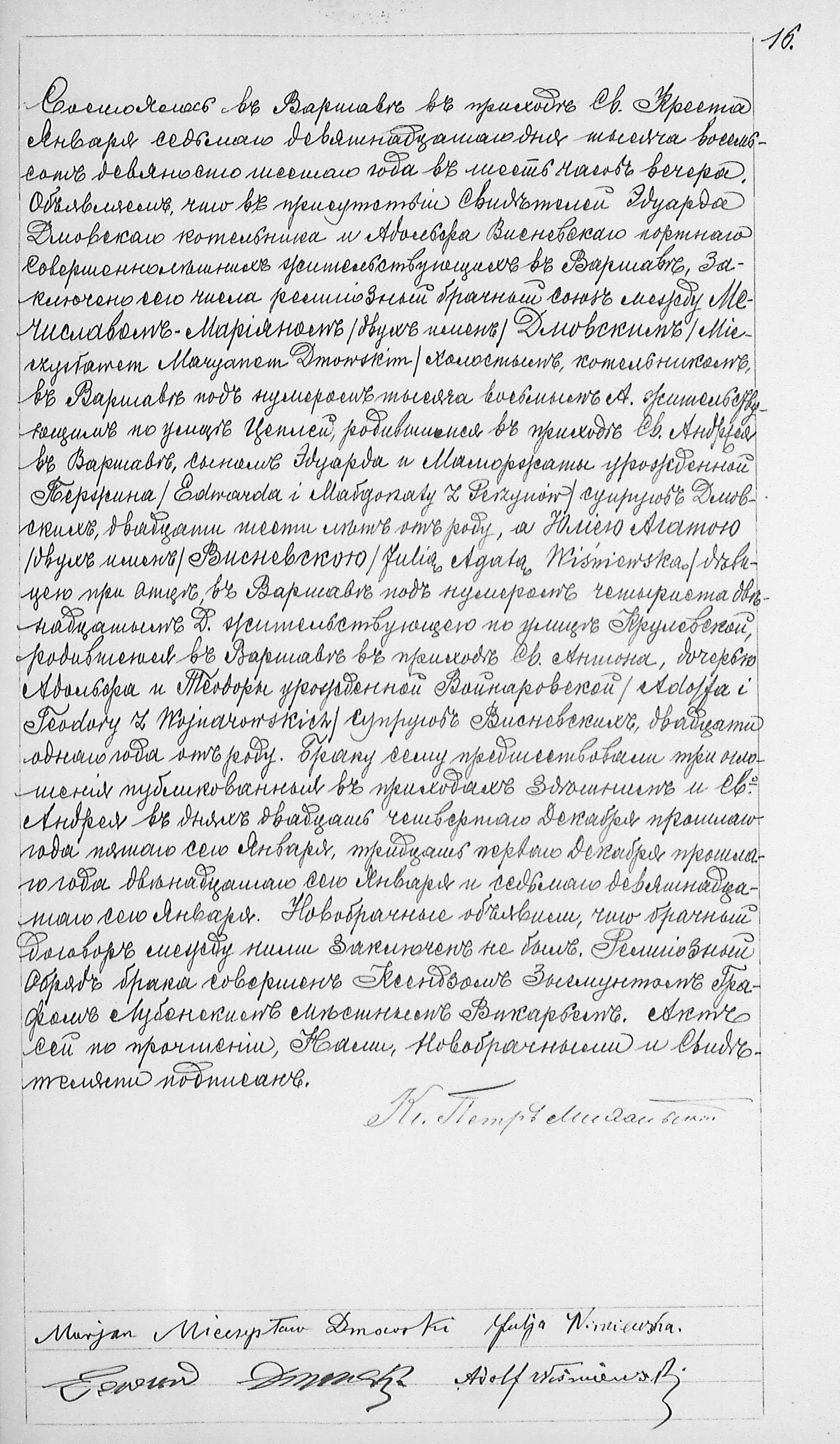 | sw.424672 | sw.424672 | sw.424673 (sw.424673) | sw.424674 (sw.424674) | Akt małżeństwa: Warszawa św. Krzyż (obecn. m. Warszawa), 102/1899 [indeks na http://geneteka.genealodzy.pl/] http://metryki.genealodzy.pl/metryki.php?op=kt&ar=1&zs=0158d&sy=1899b&kt=2 [podgląd] |