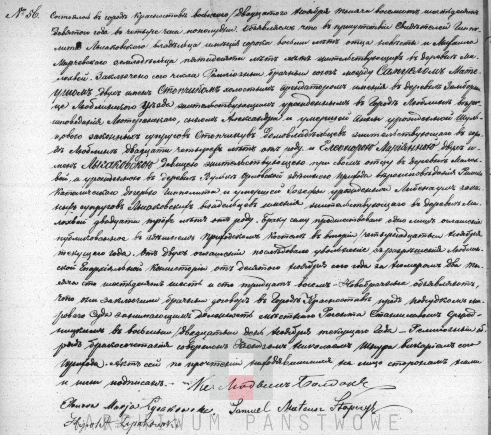 | sw.535942 | sw.535943 (sw.535943) | sw.535944 (sw.535944) | Akt małżeństwa: Krasnystaw (obecn. woj. lubel.), 56/1869 [indeks na http://geneteka.genealodzy.pl/] http://szukajwarchiwach.pl/35/1849/0/2.4/89/skan/full/SgNvaZSFOl0-kjCysGG9fg [podgląd] |