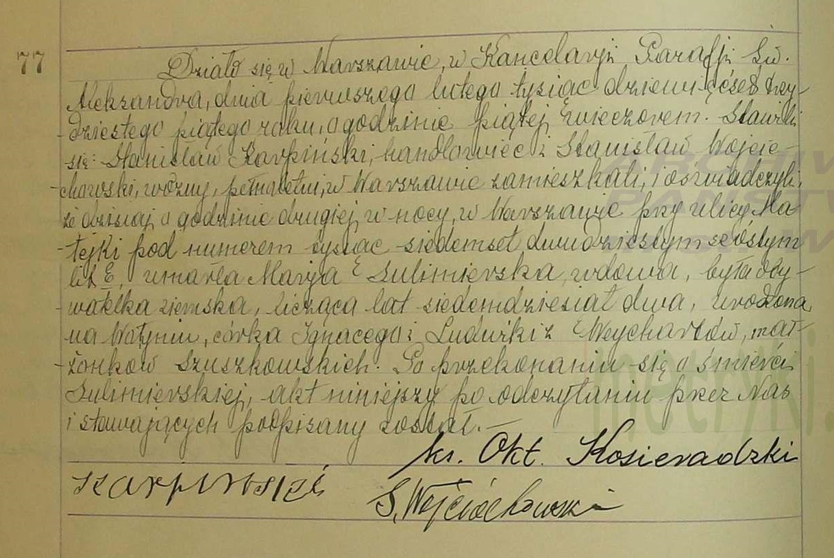 | sw.424978 | sw.424979 (sw.424979) | sw.424980 (sw.424980) | Akt małżeństwa: Warszawa św. Krzyż (obecn. m. Warszawa), 224/1889 [indeks na http://geneteka.genealodzy.pl/] http://metryki.genealodzy.pl/metryki.php?op=kt&ar=1&zs=0158d&sy=1889b&kt=2 [podgląd] |