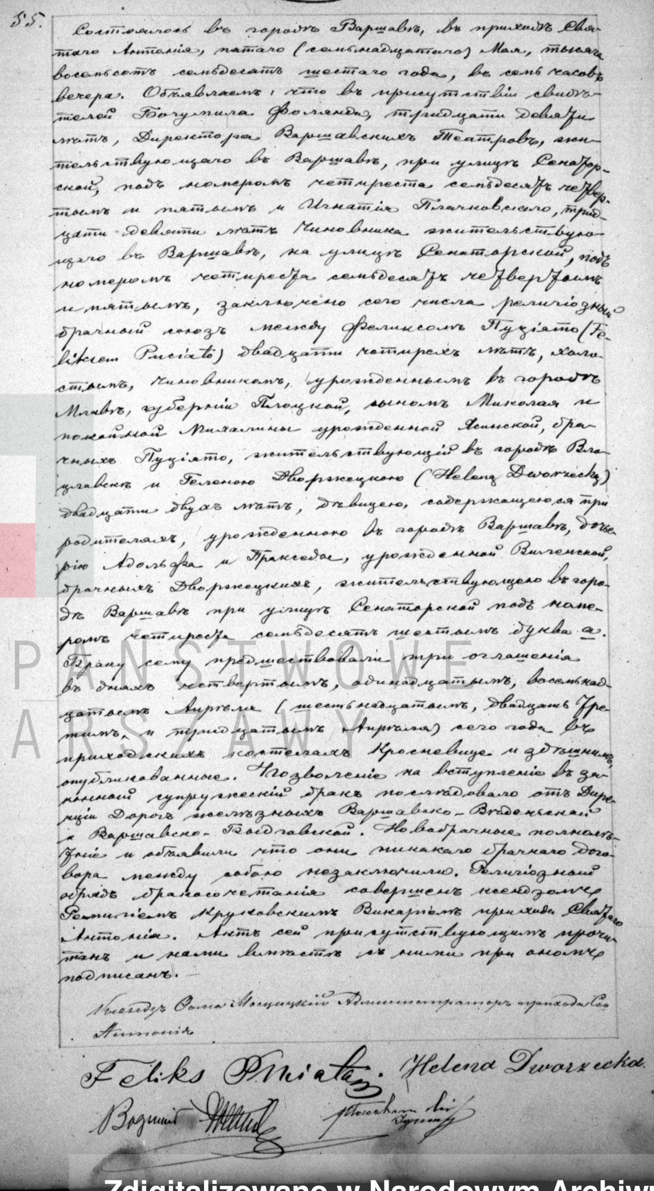 | sw.430588 | sw.430588 | sw.430589 (teatr.76698.1) | sw.430590 (sw.426546) | Akt małżeństwa: Warszawa Przemienienie Pańskie (obecn. m. Warszawa), 32/1873 [indeks na http://geneteka.genealodzy.pl/] http://metryki.genealodzy.pl/metryki.php?op=kt&ar=1&zs=1216d&sy=1873&kt=2 [podgląd] |
