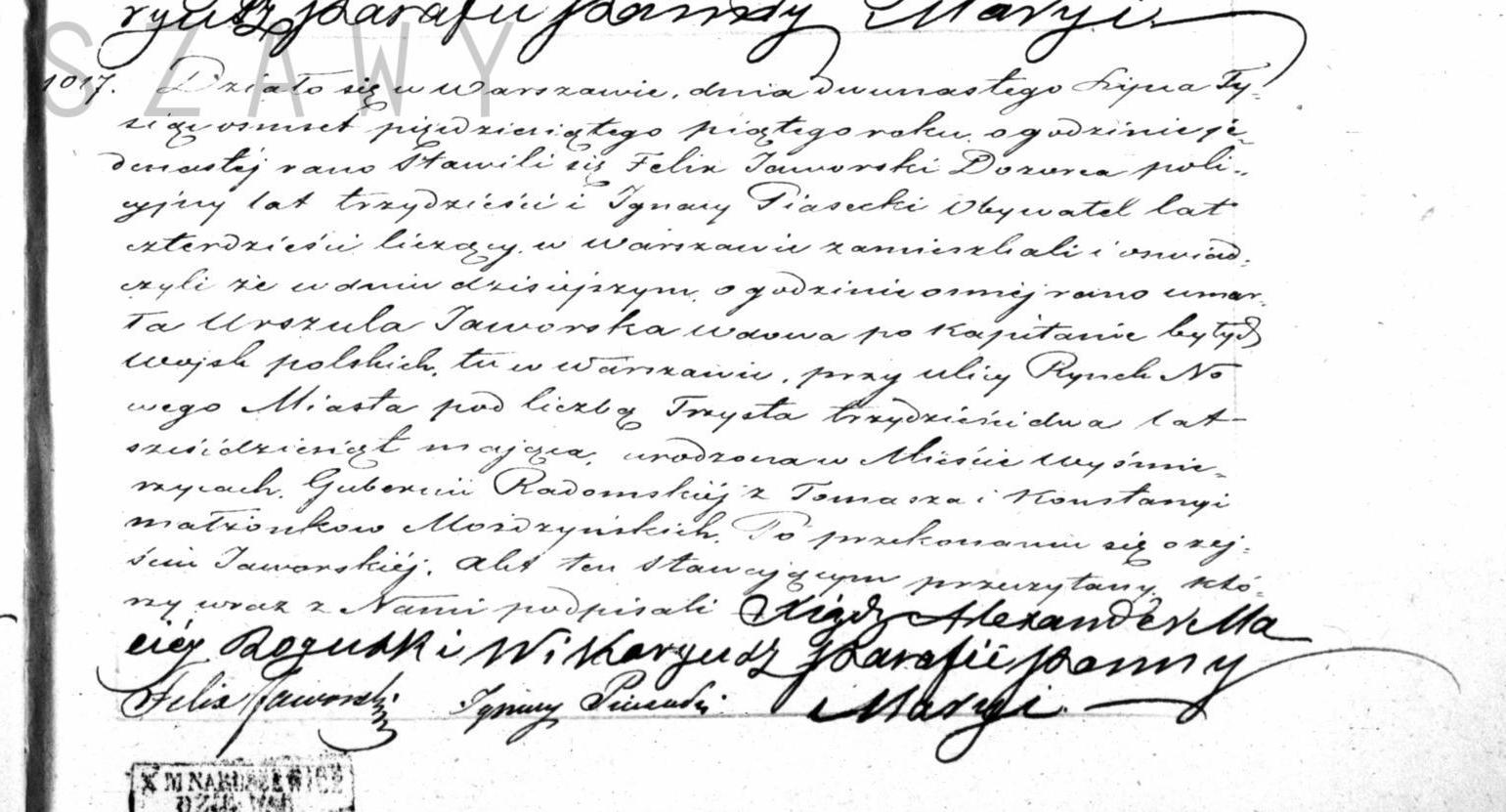 | sw.553064 | sw.553065 (sw.553065) | sw.553066 (sw.553066) | Akt zgonu: Warszawa Nawiedzenie NMP (obecn. m. Warszawa), 1017/1855 [indeks na http://geneteka.genealodzy.pl/] http://szukajwarchiwach.pl/72/160/0/-/26/skan/full/e-VJz-9e4KKlGAxhr6fYEQ [podgląd] |