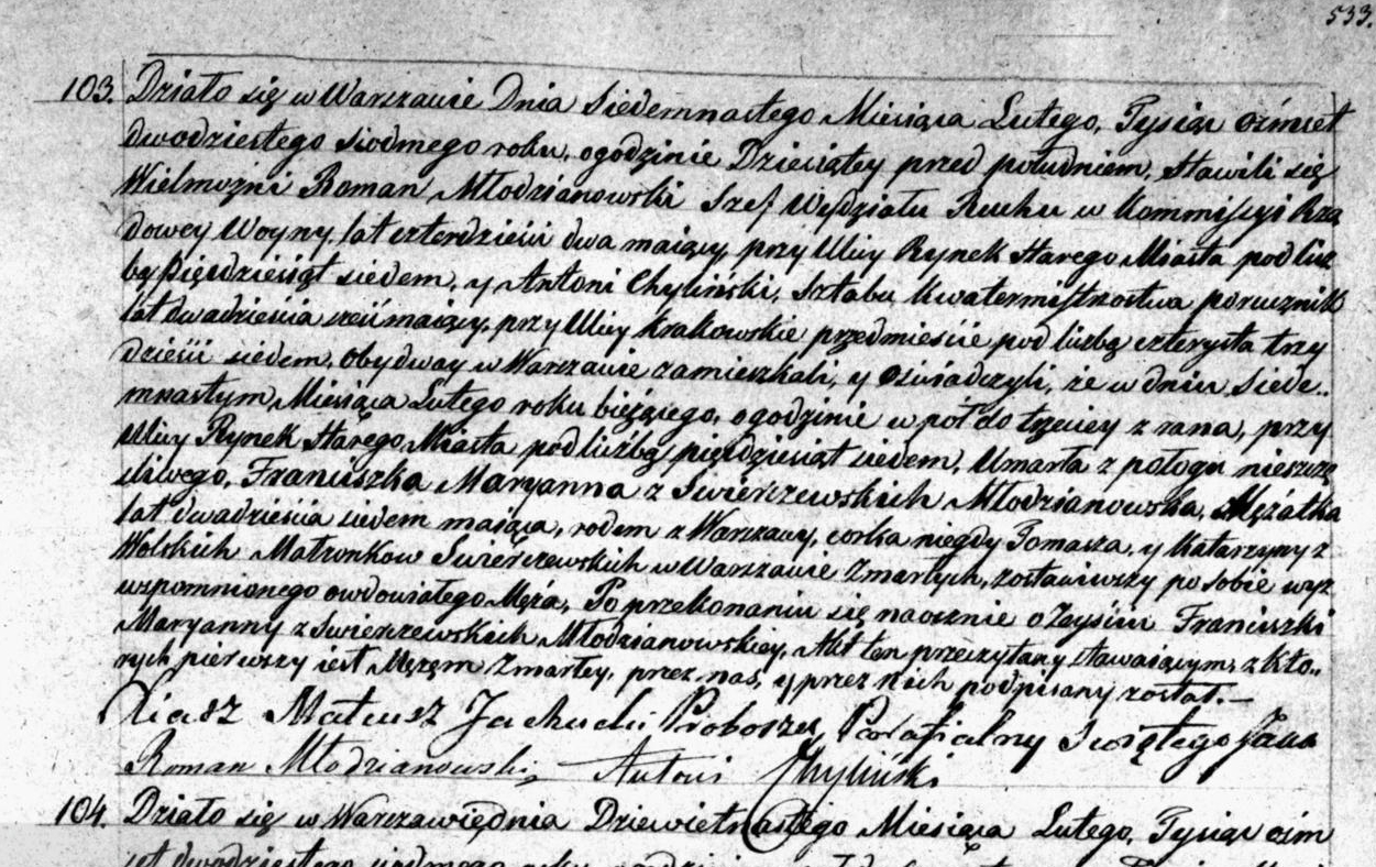 | sw.427378 | | | 1827 | | | | rodzi dziecko | Akt małżeństwa: Warszawa św. Jan (obecn. m. Warszawa), 136/1826 [indeks na http://geneteka.genealodzy.pl/] http://metryki.genealodzy.pl/metryki.php?op=kt&ar=8&zs=9233d&sy=316&kt=1 [podgląd] |