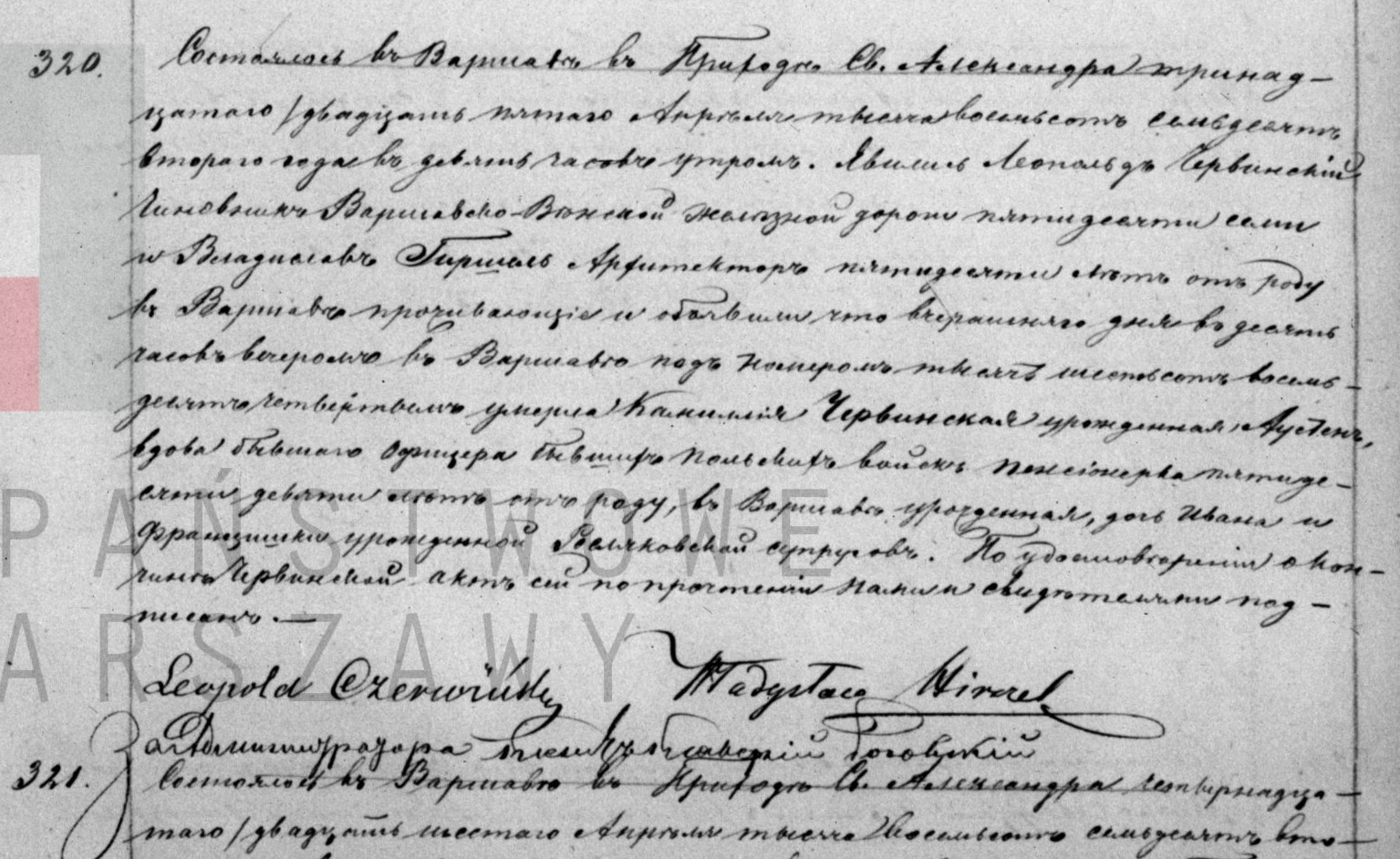 | genetekaz.11323231 | 24 | apr | 1872 | | xpar.1442 | Akt zgonu: Warszawa św. Aleksander (obecn. m. Warszawa), 320/1872 http://localhost/mjm/aleksander_1872_158_94_0290.jpg [podglad] | | Akt zgonu obecny w bazie Geneteka |