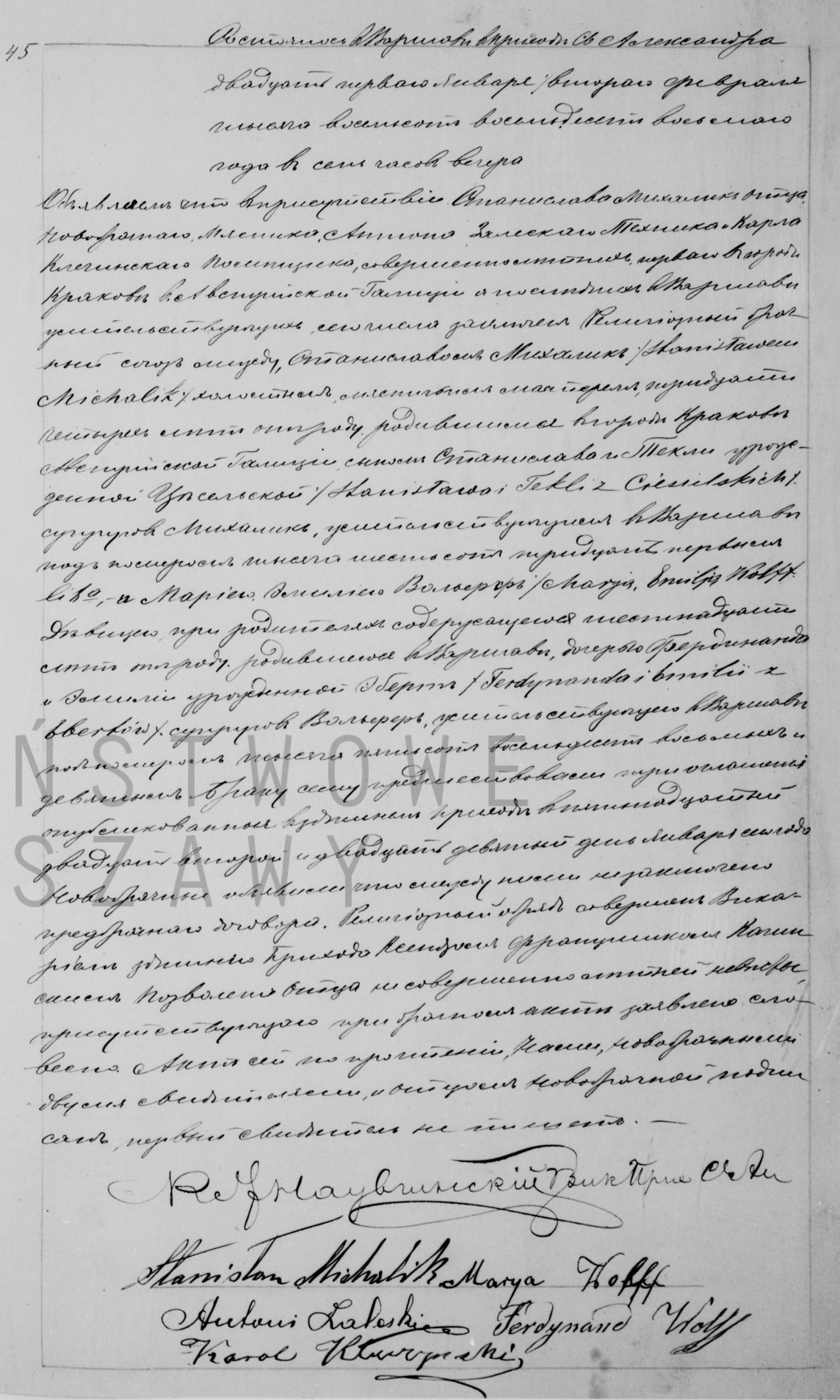 | sw.435521 | sw.435521 | sw.429523 (sw.429523) | sw.429526 (sw.429526) | Akt małżeństwa: Warszawa św. Aleksander (obecn. m. Warszawa), 172/1914 [indeks na http://geneteka.genealodzy.pl/] http://metryki.genealodzy.pl/metryka.php?ar=8&zs=9214d&sy=330&kt=1&skan=172.jpg [podgląd] |