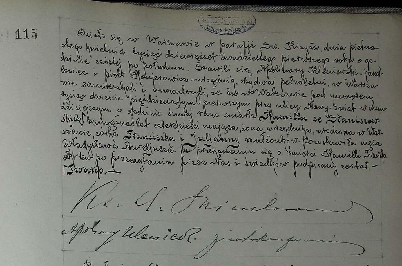| sw.430180 | sw.430181 (sw.430181) | sw.430182 (sw.430182) | Akt małżeństwa: Warszawa św. Aleksander (obecn. m. Warszawa), 298/1903 [indeks na http://geneteka.genealodzy.pl/] http://metryki.genealodzy.pl/metryka.php?ar=1&zs=0162d&sy=1903b&kt=2&skan=298-299.jpg [podgląd] |