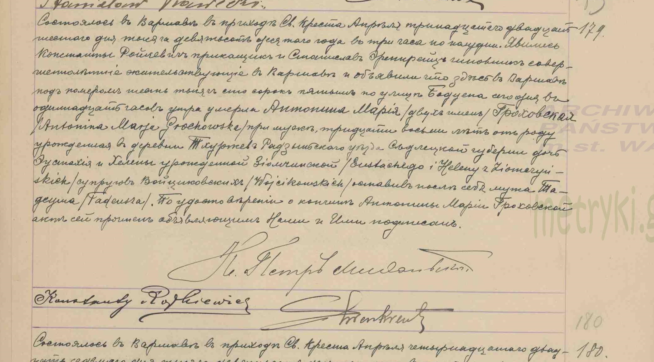 | sw.430274 | 1866 | żeni się | Akt małżeństwa: Warszawa św. Aleksander (obecn. m. Warszawa), 205/1901 [indeks na http://geneteka.genealodzy.pl/] http://metryki.genealodzy.pl/metryka.php?ar=8&zs=9214d&sy=317&kt=1&skan=205.jpg [podgląd] | |||||