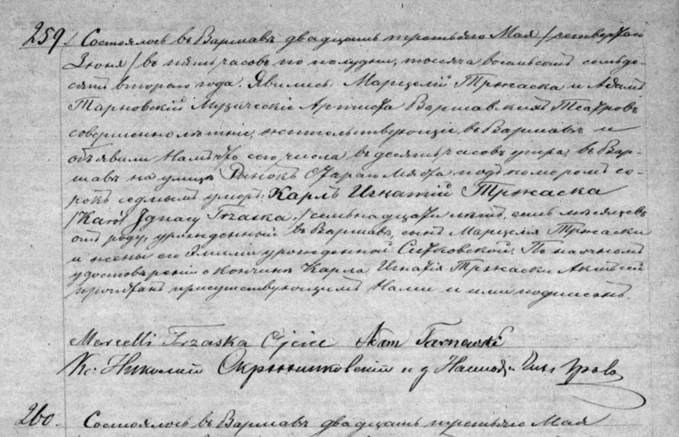 | sw.430585 | sw.430585 | sw.430586 (sw.430586) | sw.430587 (sw.430587) | Akt małżeństwa: Warszawa Przemienienie Pańskie (obecn. m. Warszawa), 32/1873 [indeks na http://geneteka.genealodzy.pl/] http://metryki.genealodzy.pl/metryki.php?op=kt&ar=1&zs=1216d&sy=1873&kt=2 [podgląd] |