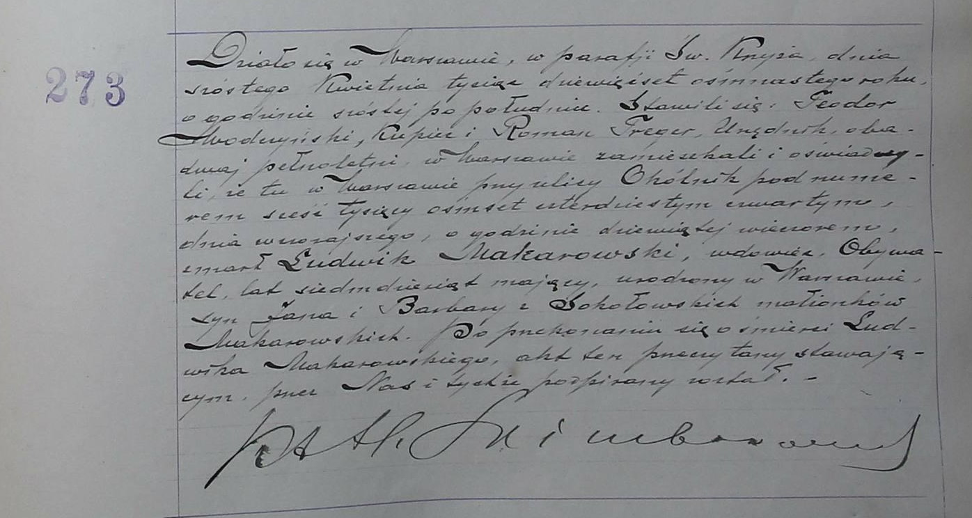 | genetekaz.11257081 | 5 | apr | 1918 | xpar.1450 | Akt zgonu: Warszawa św. Krzyż (obecn. m. Warszawa), 273/1918 http://metryki.genealodzy.pl/metryki.php?op=kt&ar=1&zs=0158d&sy=1918&kt=3 [podglad] | Akt zgonu obecny w bazie Geneteka | ||