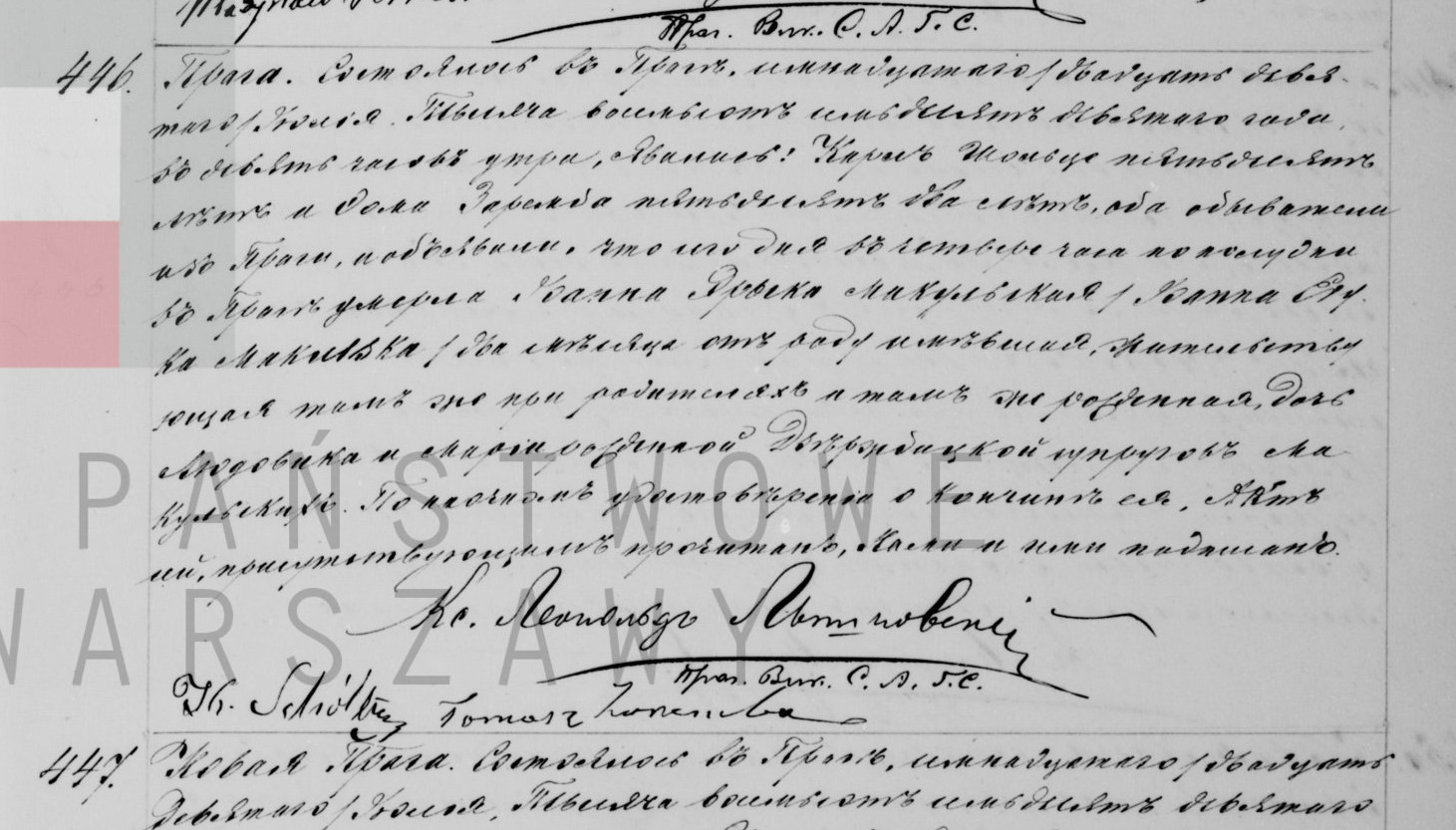 | sw.431674 | sw.431675 (sw.428443) | sw.431676 (sw.428446) | Akt małżeństwa: Warszawa św. Andrzej (obecn. m. Warszawa), 93/1871 [indeks na http://geneteka.genealodzy.pl/] http://metryki.genealodzy.pl/metryki.php?op=kt&ar=1&zs=0159d&sy=1871&kt=2 [podgląd] |