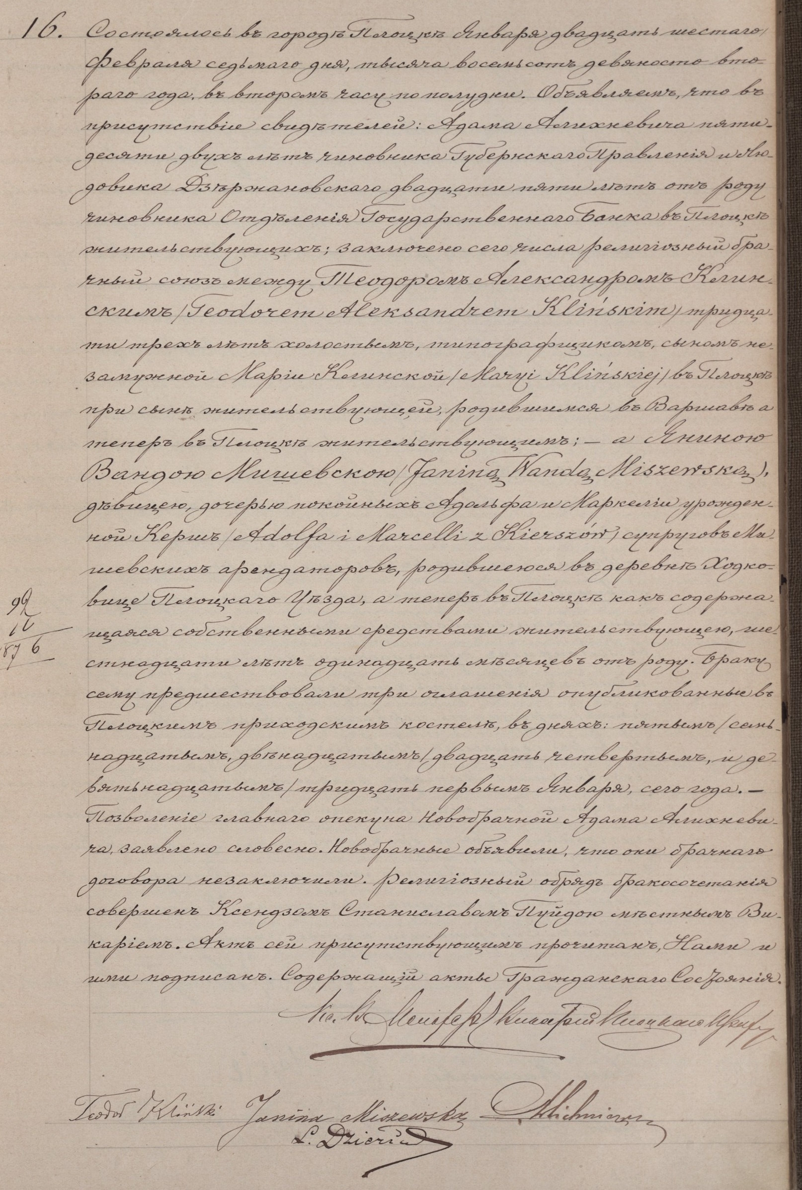 | sw.435677 | sw.435677 | sw.431762 (sw.431762) | sw.431763 (sw.431763) | Akt małżeństwa: Płock (obecn. woj. mazow.), 16/1892 [indeks na http://geneteka.genealodzy.pl/] http://szukajwarchiwach.pl/50/155/0/-/130#tabSkany [podgląd] |