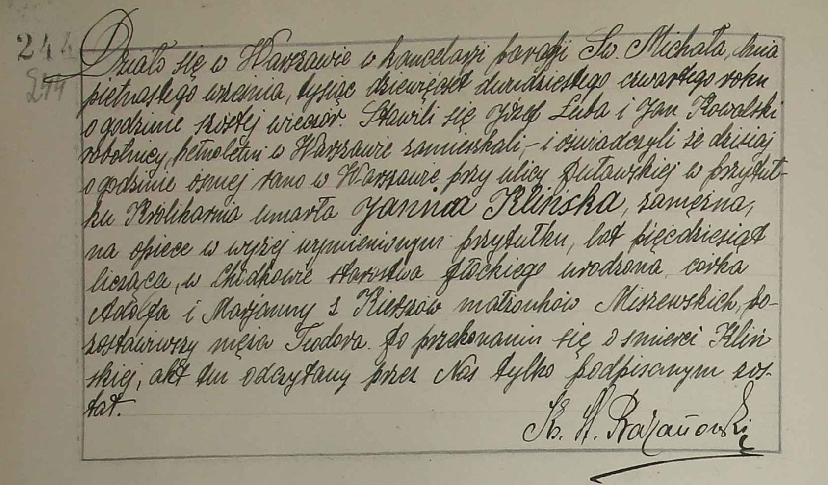 | sw.1046599 | sw.1046599 | sw.431762 (sw.431762) | sw.431763 (sw.431763) | Akt zgonu: Warszawa-Mokotów św. Michał (obecn. m. Warszawa), 244/1924 [indeks na http://geneteka.genealodzy.pl/] http://metryki.genealodzy.pl/ar8-zs9247d [podgląd] |
