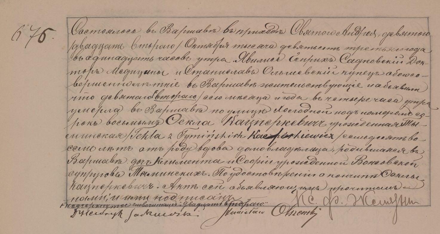 | genetekaz.11493807 | 22 | oct | 1903 | | xpar.1443 | Akt zgonu: Warszawa św. Andrzej (obecn. m. Warszawa), 676/1903 http://localhost/mjm/andrzej_1903_162_41_0532.jpg [podglad] | | Akt zgonu obecny w bazie Geneteka |