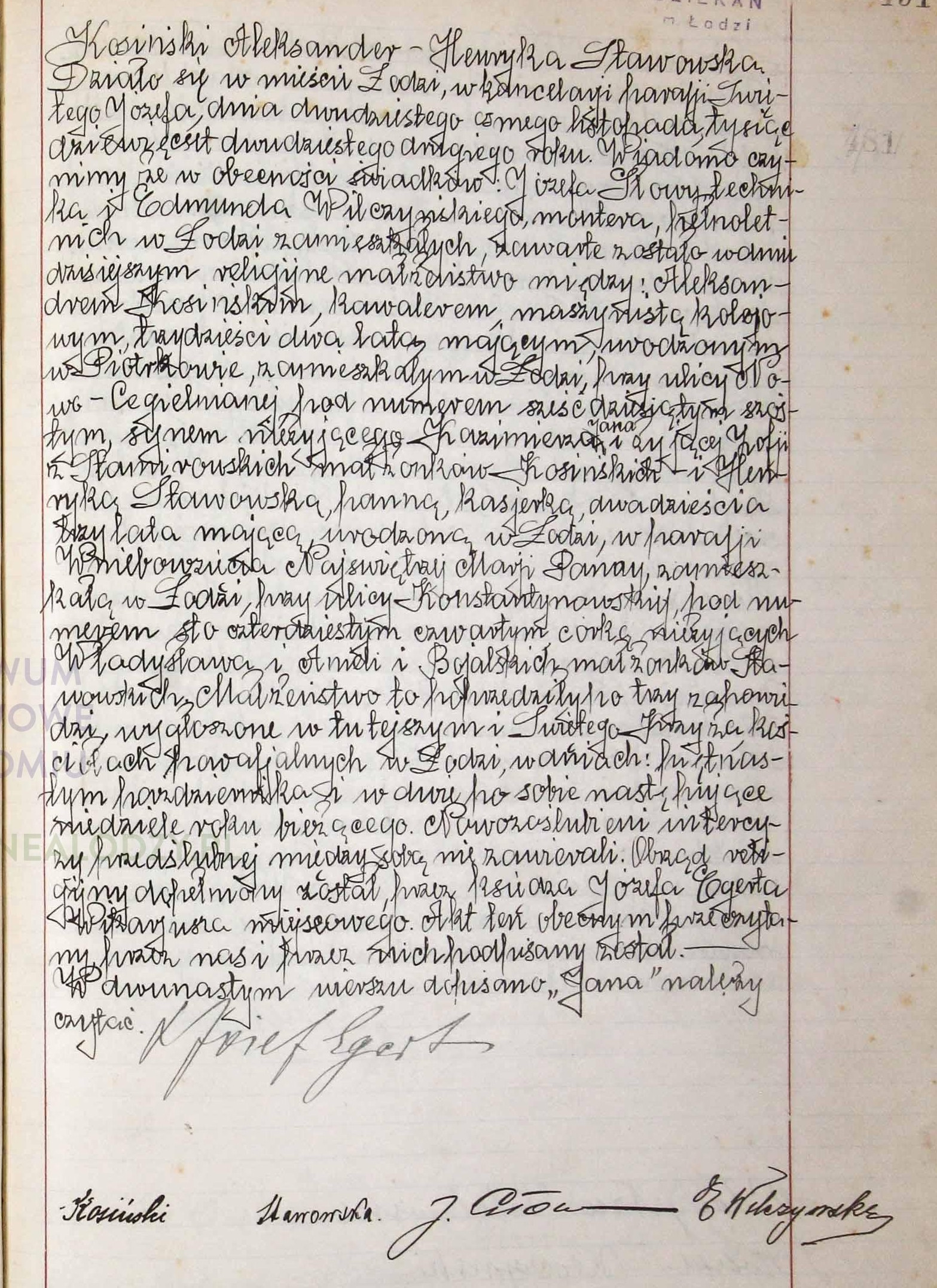 | sw.435585 | sw.430520 (le.3488.1.4) | sw.430521 (sw.430521) | Akt małżeństwa: Warszawa Wsz. Św. (obecn. m. Warszawa), 108/1885 [indeks na http://geneteka.genealodzy.pl/] http://metryki.genealodzy.pl/metryka.php?ar=8&zs=9264d&sy=309&kt=1&skan=108.jpg [podgląd] |