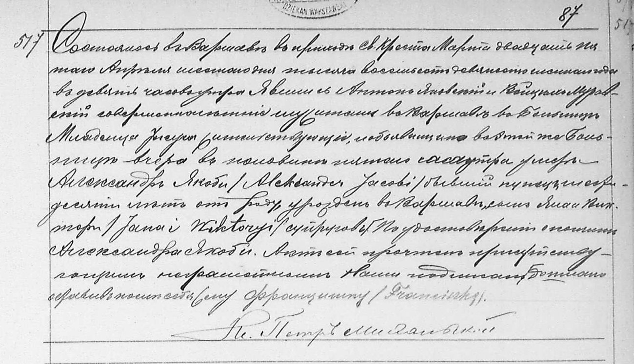 | genetekaz.11418393 | 5 | apr | 1896 | | xpar.1450 | Akt zgonu: Warszawa św. Krzyż (obecn. m. Warszawa), 517/1896 http://localhost/mjm/krzyz_1896_161_130_0173.jpg [podglad] | | Akt zgonu obecny w bazie Geneteka |
