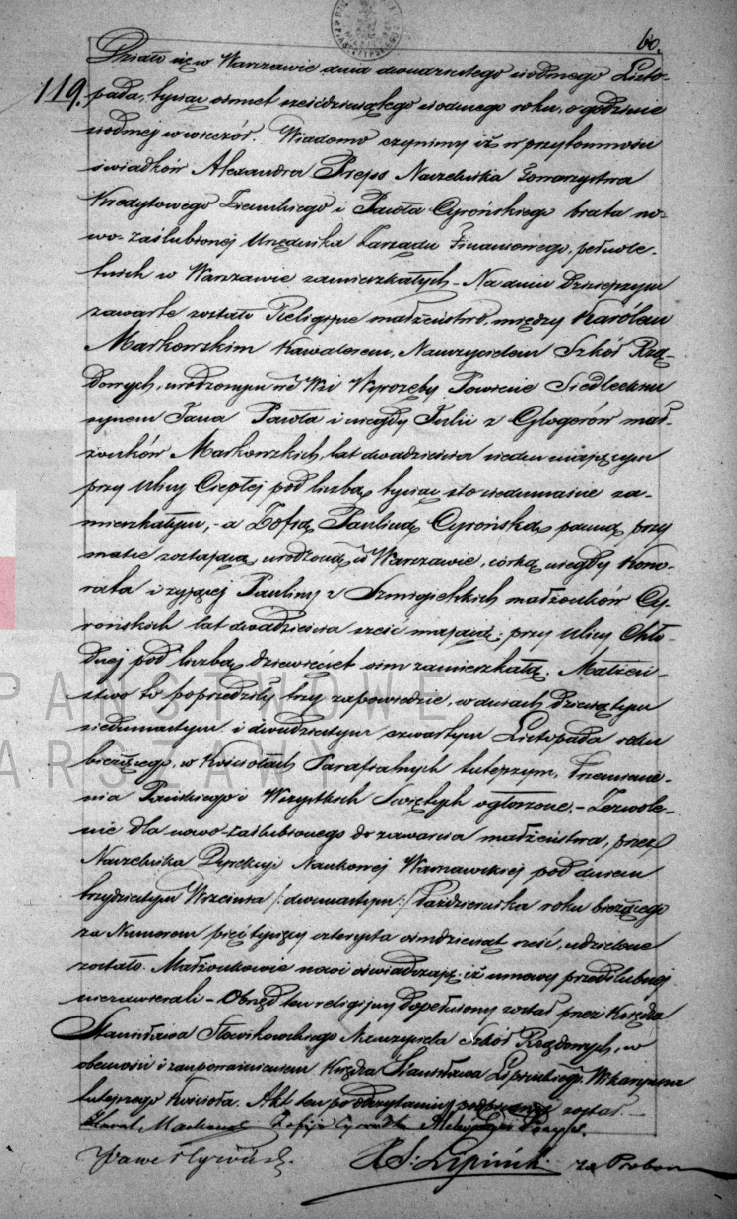 | sw.440590 | | | 1824 | | | | wychodzi za mąż | Akt małżeństwa: Warszawa św. Andrzej (obecn. m. Warszawa), 119/1867 [indeks na http://geneteka.genealodzy.pl/] http://metryki.genealodzy.pl/metryki.php?op=kt&ar=1&zs=0159d&sy=1867&kt=2 [podgląd] |