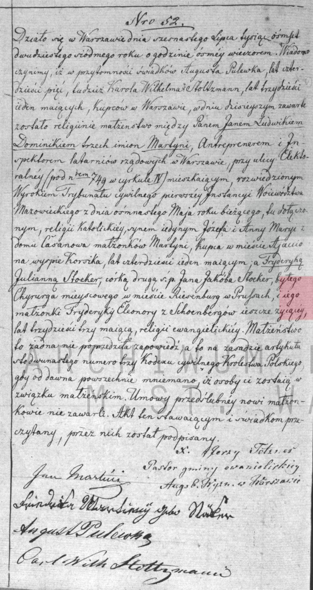 | sw.481156 | sw.481157 (sw.481157) | sw.481158 (sw.481158) | Akt małżeństwa: Warszawa parafia Ewangelicko-Augsburska (obecn. m. Warszawa), 52/1827 [indeks na http://geneteka.genealodzy.pl/] http://metryki.genealodzy.pl/metryki.php?op=kt&ar=1&zs=0181d&sy=1827&kt=2 [podgląd] |
