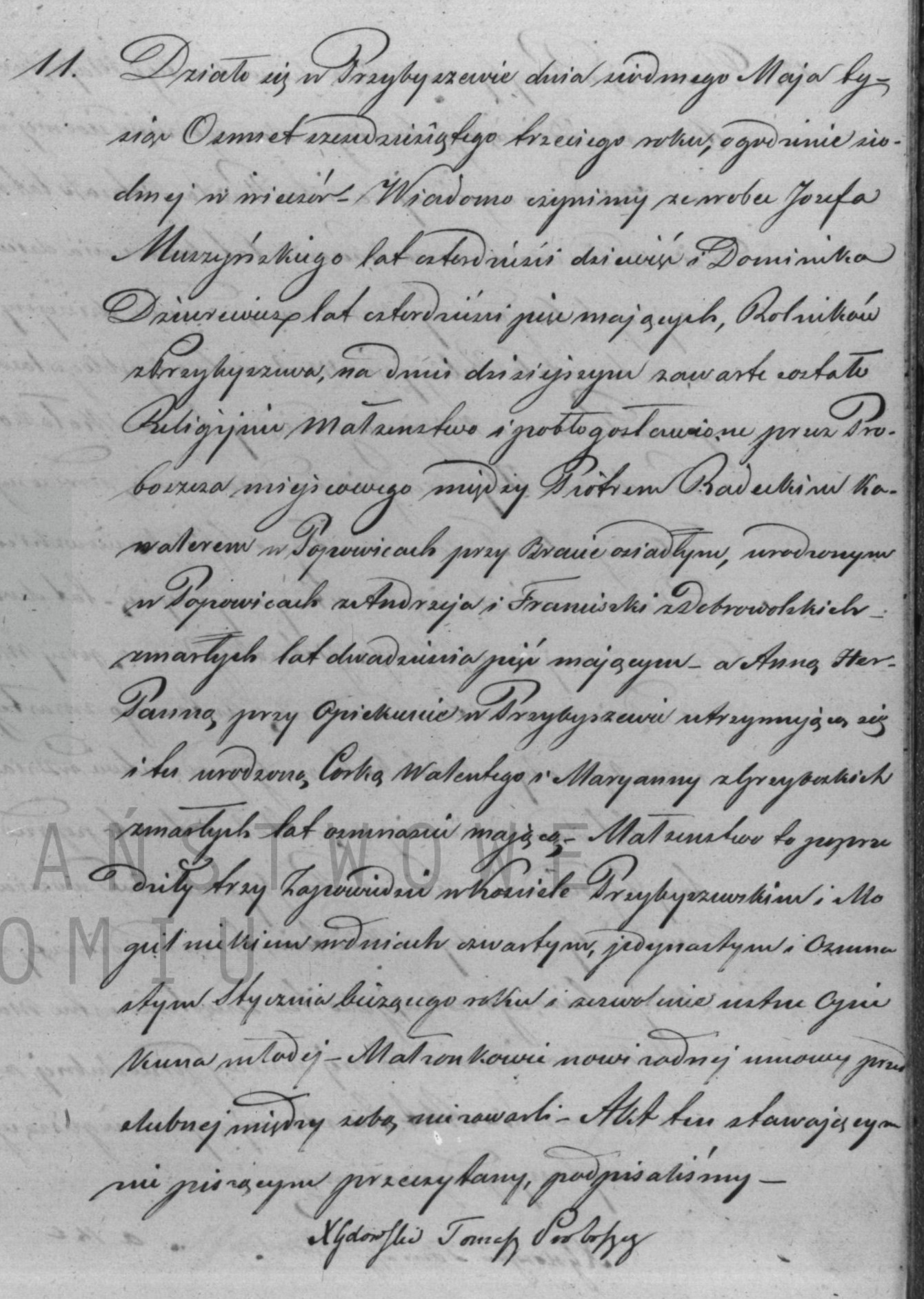 | sw.442520 | | | 1835 | | | | żeni się | Akt małżeństwa: Przybyszew (obecn. woj. mazow.), 11/1863 [indeks na http://geneteka.genealodzy.pl/] http://szukajwarchiwach.pl/58/154/0/1/13/skan/full/eTRm17kP6rCgo08nhGhOGw [podgląd] |