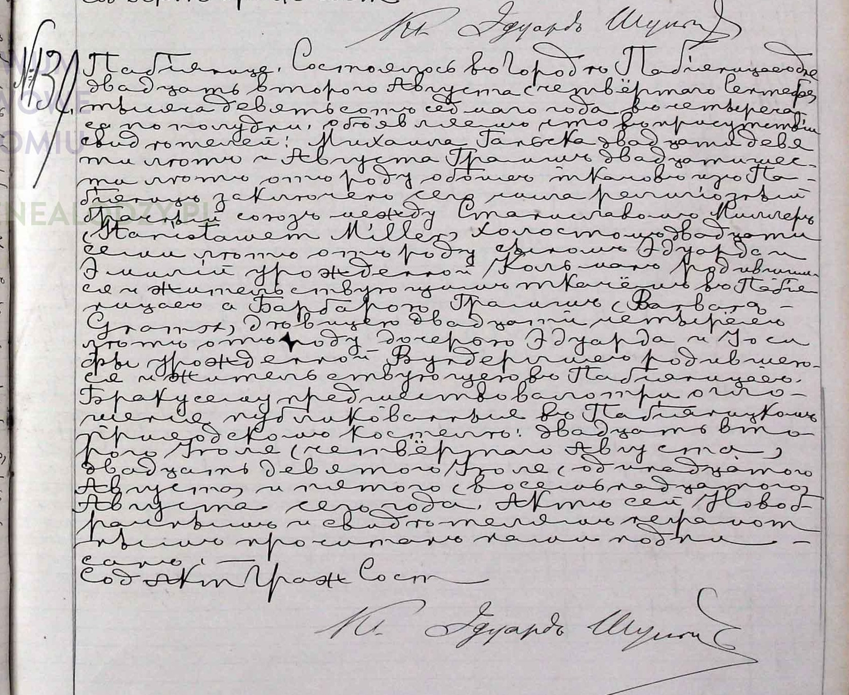 | sw.450413 | sw.447863 (sw.447863) | sw.447864 (sw.447864) | Akt małżeństwa: Pabianice św. Mateusz (obecn. woj. łódz.), 56/1879 [indeks na http://geneteka.genealodzy.pl/] http://metryki.genealodzy.pl/metryki.php?op=kt&ar=3&zs=1614d&sy=1879&kt=2 [podgląd] |