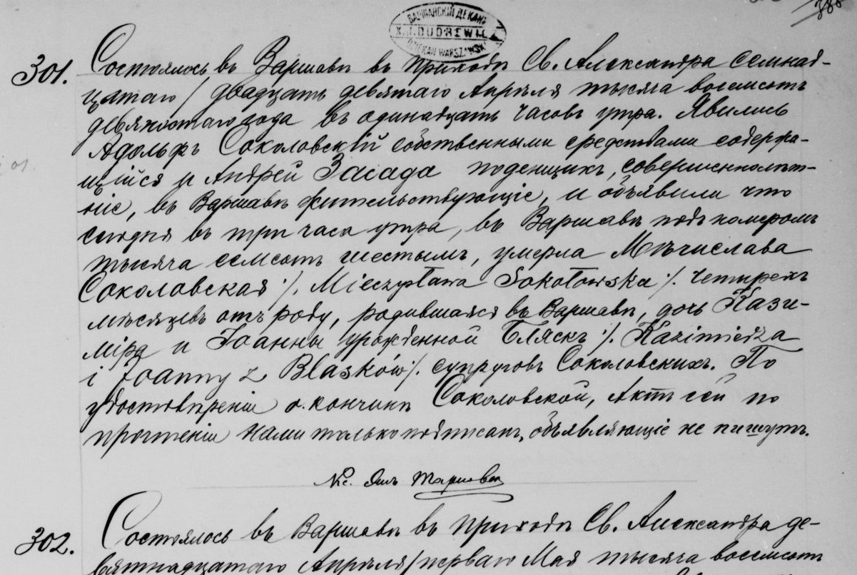 | sw.448820 | | | 1881 | | | | rodzi dziecko | Akt małżeństwa: Warszawa-Praga MB Loretańska (obecn. m. Warszawa), 135/1879 [indeks na http://geneteka.genealodzy.pl/] http://metryki.genealodzy.pl/metryki.php?op=kt&ar=1&zs=0163d&sy=1879&kt=2 [podgląd] |