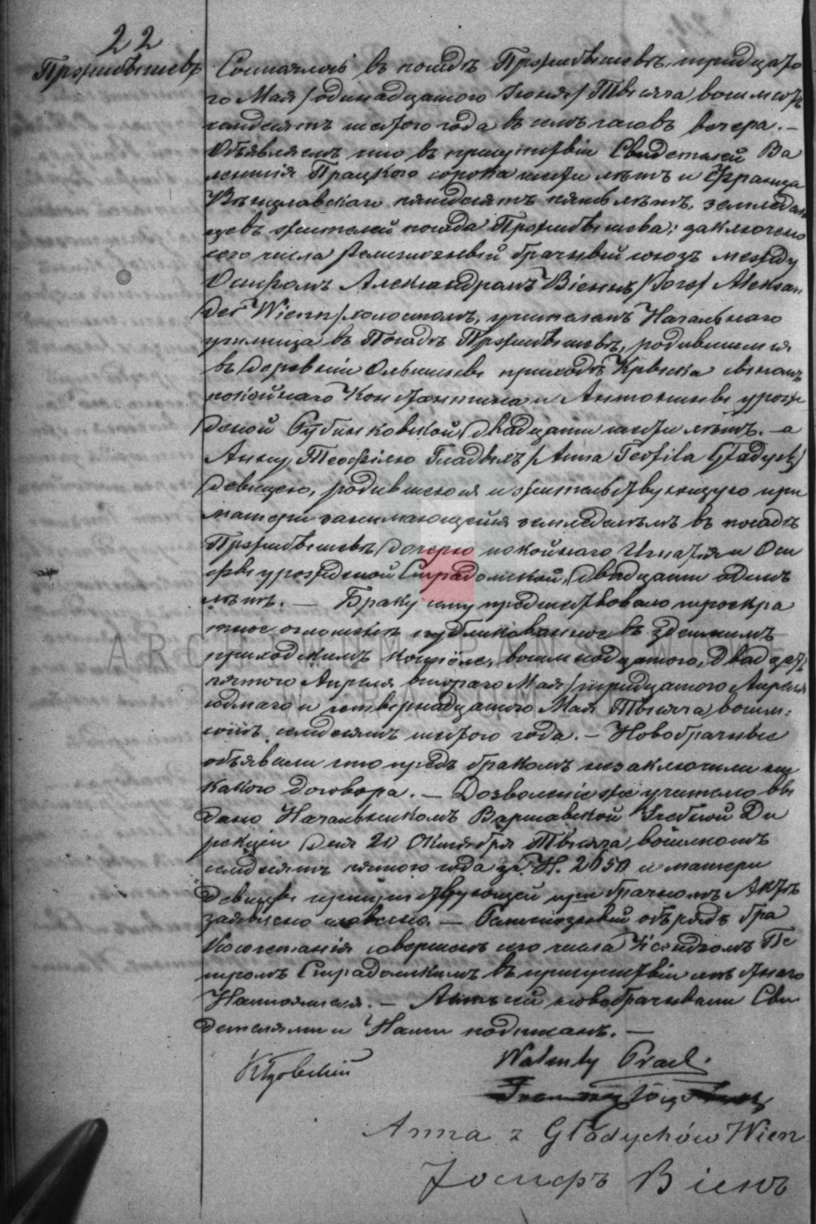 | sw.449131 | | | 1834 | | | | wychodzi za mąż | Akt małżeństwa: Przybyszew (obecn. woj. mazow.), 22/1876 [indeks na http://geneteka.genealodzy.pl/] http://szukajwarchiwach.pl/58/154/0/1/26/skan/full/CDKq3OMdhQiPavOxjf7Evw [podgląd] |