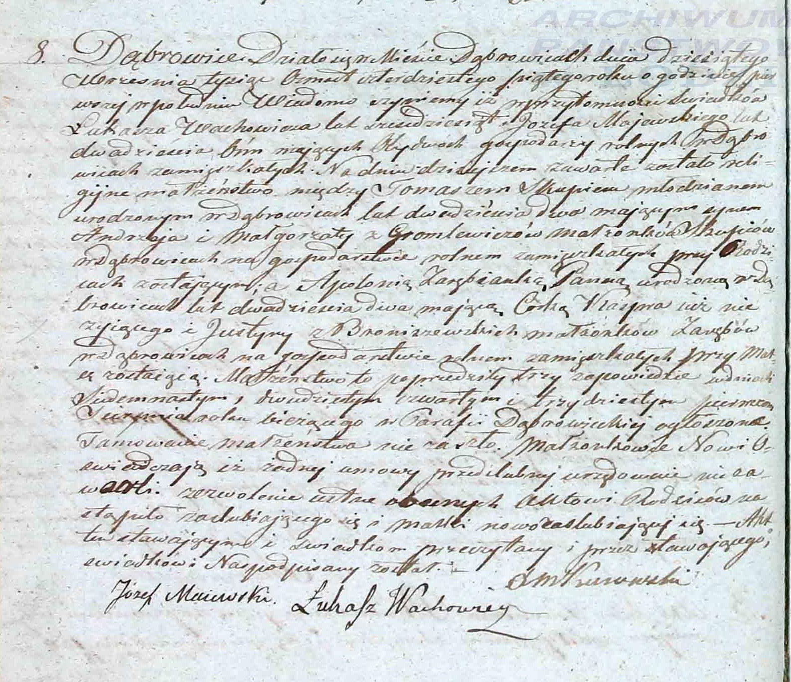| sw.458690 | sw.458690 | sw.451345 (sw.451345) | sw.451346 (sw.451346) | Akt małżeństwa: Dąbrowice (obecn. woj. łódz.), 16/1834 [indeks na http://geneteka.genealodzy.pl/] http://metryki.genealodzy.pl/metryki.php?op=kt&ar=3&zs=1453d&sy=1834&kt=2 [podgląd] |