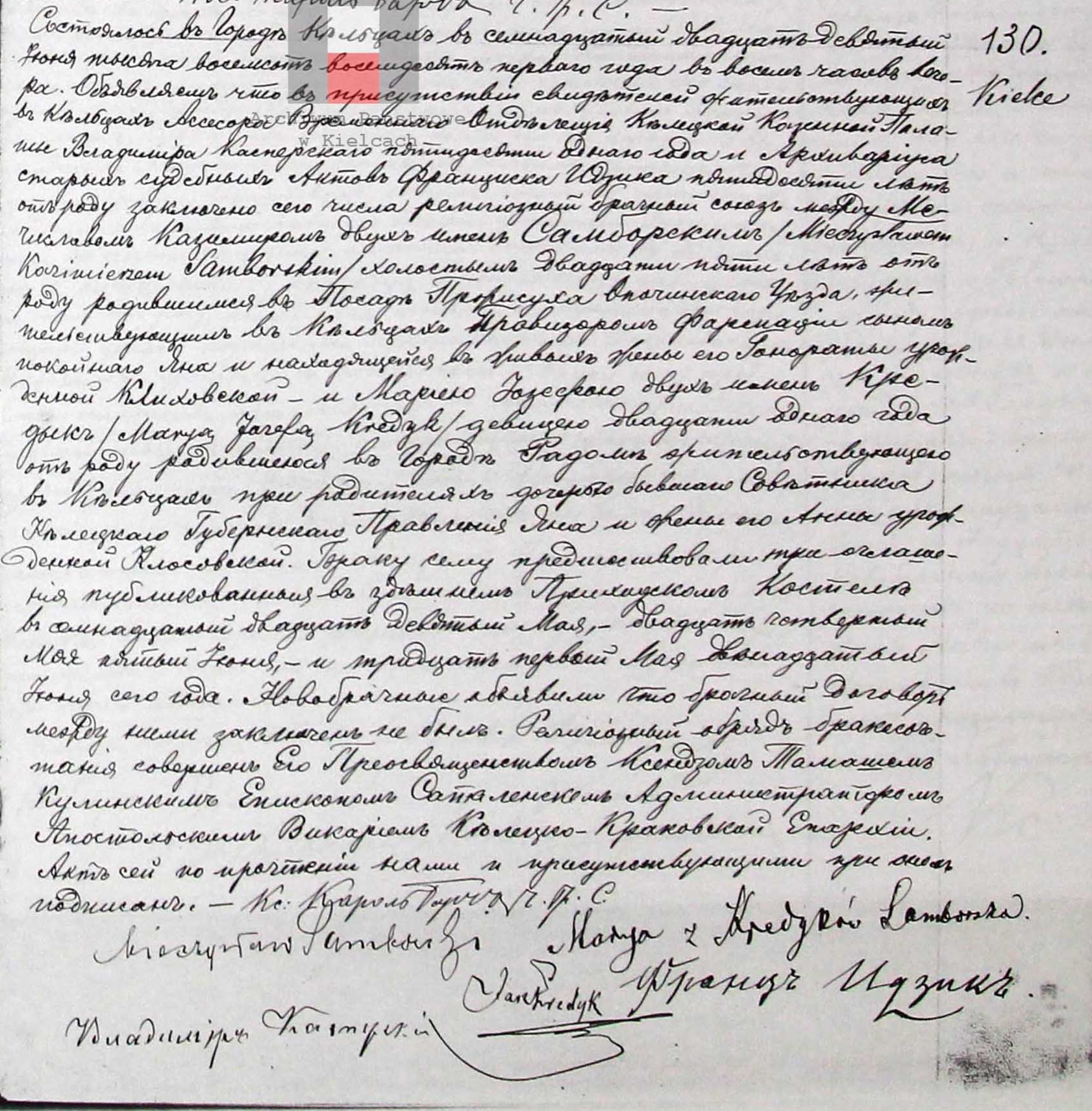 | sw.460326 | | | 1840 | | | | żeni się | Akt małżeństwa: Kielce (Katedra) (obecn. woj. świętok.), 130/1881 [indeks na http://geneteka.genealodzy.pl/] http://metryki.genbaza.pl/genbaza,detail,87548,66 [podgląd] |