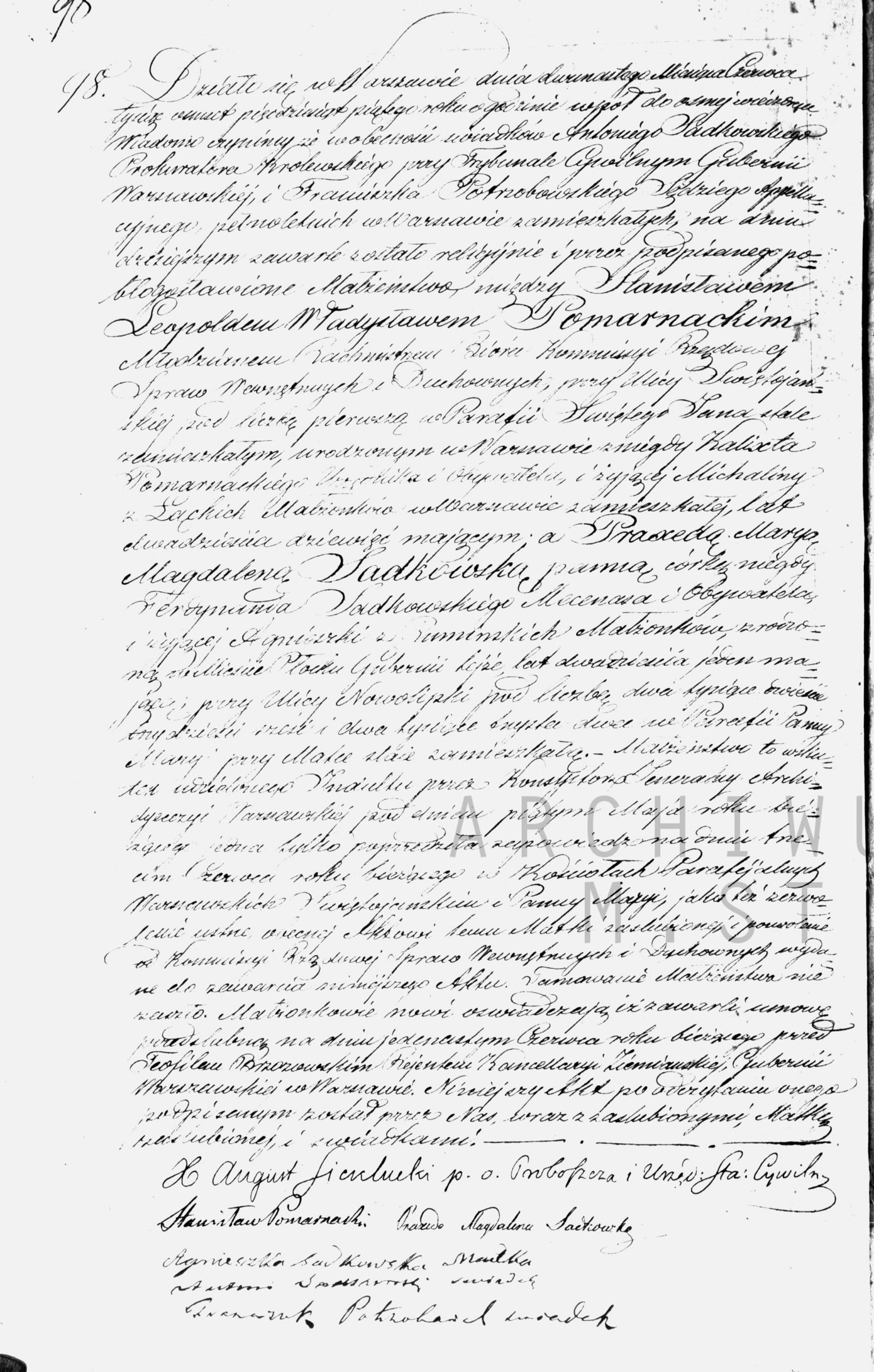 | sw.46153 | sw.46154 (sw.46154) | 1855 | xpar.1448 | Akt małżeństwa: Warszawa św. Jan (obecn. m. Warszawa), rok 1855, nr aktu 98 [indeks na http://geneteka.genealodzy.pl/] http://metryki.genealodzy.pl/metryki.php?op=kt&ar=1&zs=0161d&sy=1855&kt=2 [podgląd] | Akt ślubu obecny w bazie Geneteka |