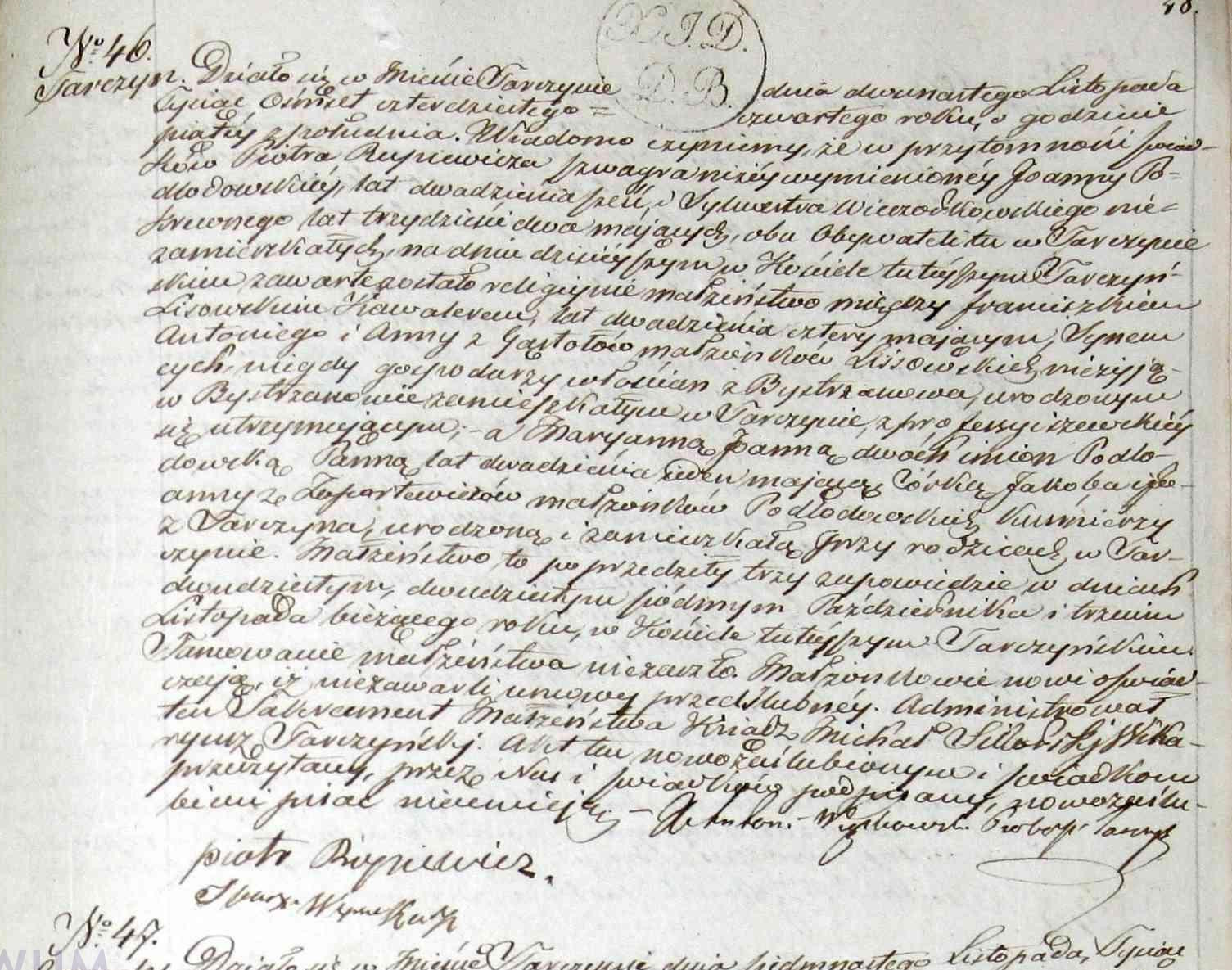 | sw.996891 | sw.996891 | sw.461918 (sw.461918) | sw.461919 (sw.461919) | Akt małżeństwa: Tarczyn (obecn. woj. mazow.), 46/1844 [indeks na http://geneteka.genealodzy.pl/] http://metryki.genealodzy.pl/metryki.php?op=kt&ar=2&zs=1363d&sy=1844&kt=2 [podgląd] |