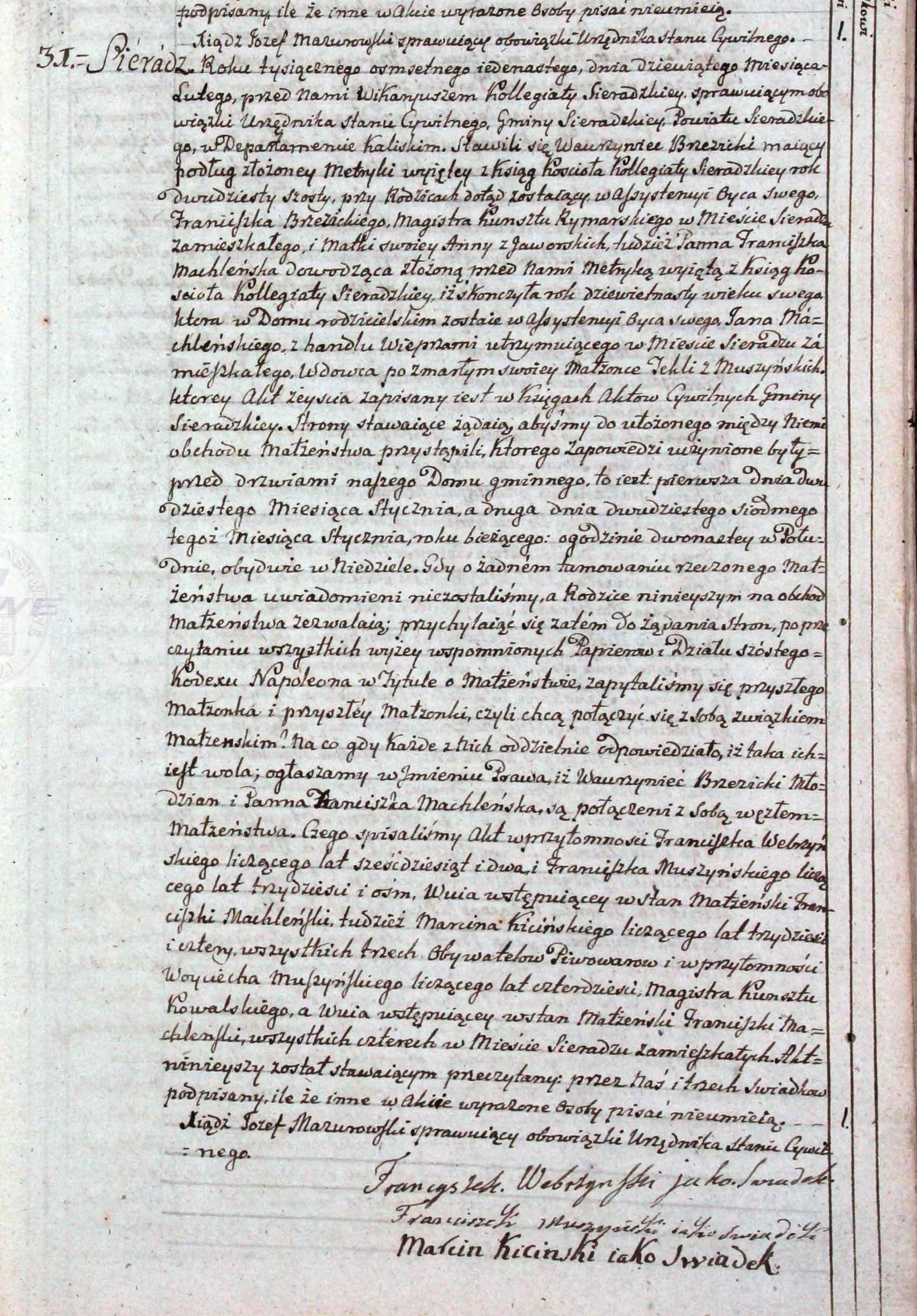 | sw.228985 | sw.633630 | sw.633631 (sw.461930) | sw.633632 (sw.461931) | Akt małżeństwa: Sieradz (obecn. woj. łódz.), 31/1811 [indeks na http://geneteka.genealodzy.pl/] http://metryki.genealodzy.pl/metryki.php?op=kt&ar=3&zs=1663d&sy=1810&kt=3 [podgląd] |