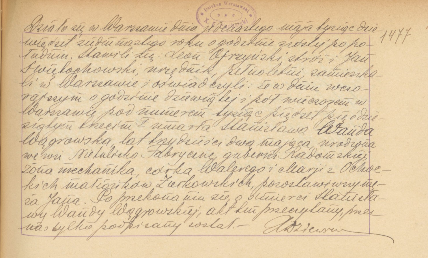 | sw.1117623 | sw.1117623 | sw.1117624 (sw.462340) | sw.1117625 (sw.462343) | Akt małżeństwa: Warszawa św. Barbara (obecn. m. Warszawa), 94/1900 [indeks na http://geneteka.genealodzy.pl/] https://szukajwarchiwach.gov.pl/jednostka/-/jednostka/12758752 [podgląd] |