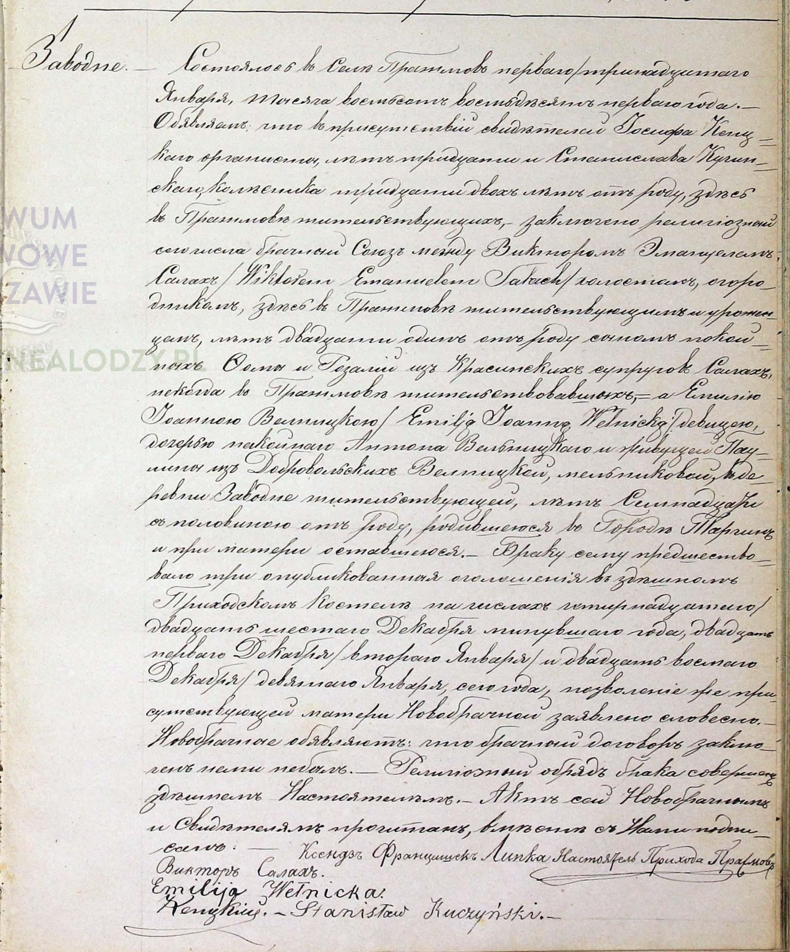 | sw.1317473 | sw.1359220 | sw.462979 (sw.462979) | sw.462980 (sw.462980) | Akt małżeństwa: Prażmów (obecn. woj. mazow.), 1/1881 [indeks na http://geneteka.genealodzy.pl/] http://metryki.genealodzy.pl/metryki.php?op=kt&ar=2&zs=1350d&sy=1881&kt=2 [podgląd] |