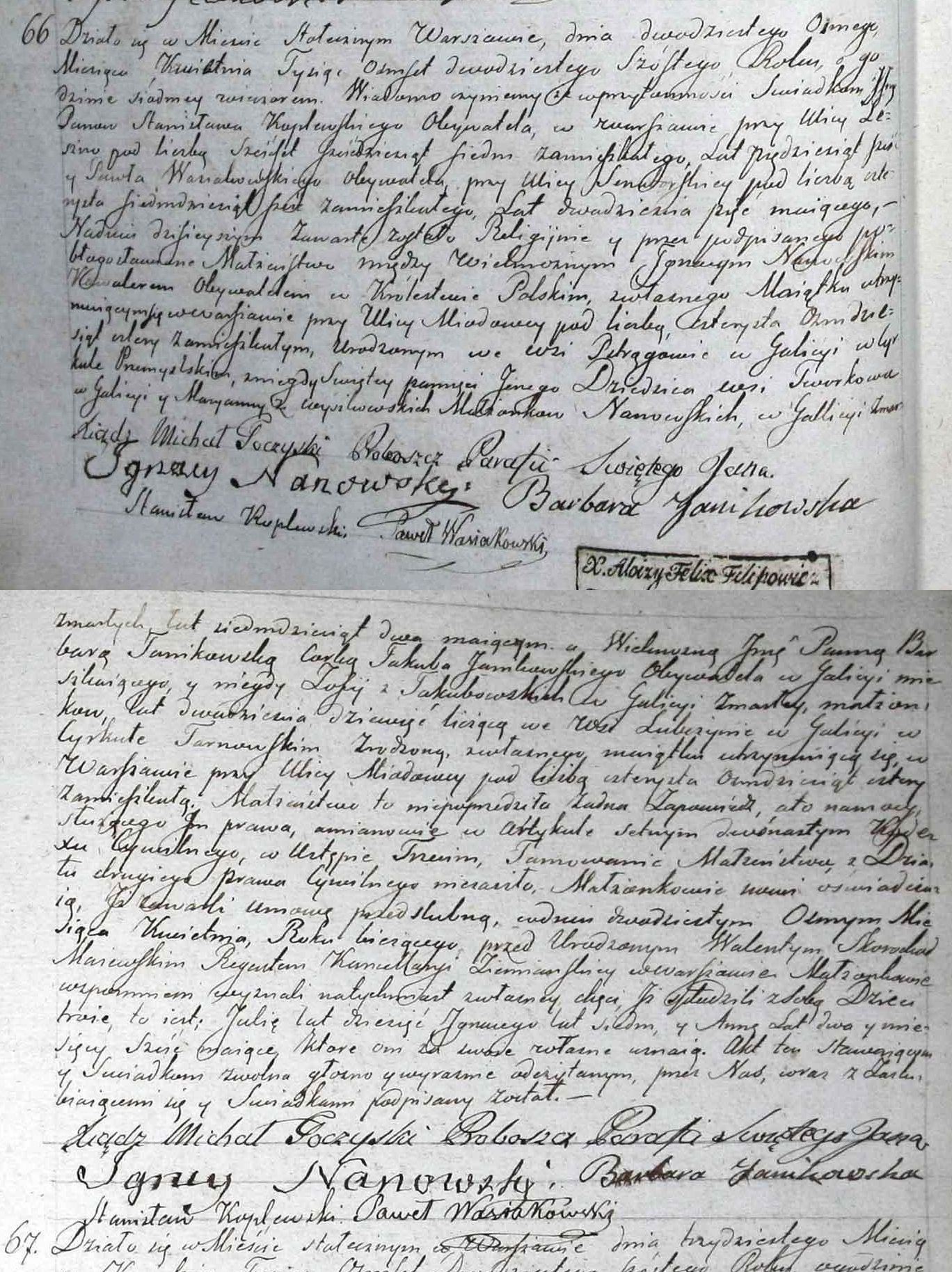 | sw.519241 | | | | ABT 1816 | | | | Akt małżeństwa: Warszawa św. Jan (obecn. m. Warszawa), 66/1826 [indeks na http://geneteka.genealodzy.pl/] http://metryki.genealodzy.pl/metryki.php?op=kt&ar=8&zs=9233d&sy=316&kt=1 [podgląd] |