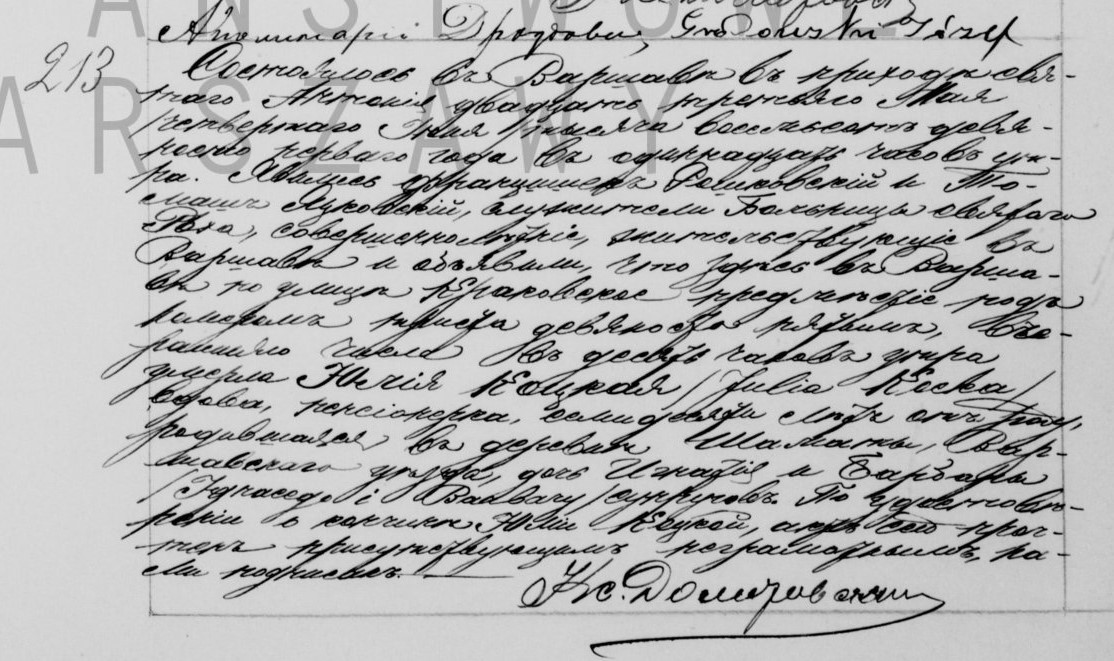 | sw.469011 | | | 1842 | | | | wychodzi za mąż | Akt zgonu: Warszawa św. Jan (obecn. m. Warszawa), 641/1852 [indeks na http://geneteka.genealodzy.pl/] http://metryki.genealodzy.pl/metryka.php?ar=8&zs=9233d&sy=519&kt=2&plik=0640-0645.jpg [podgląd] |