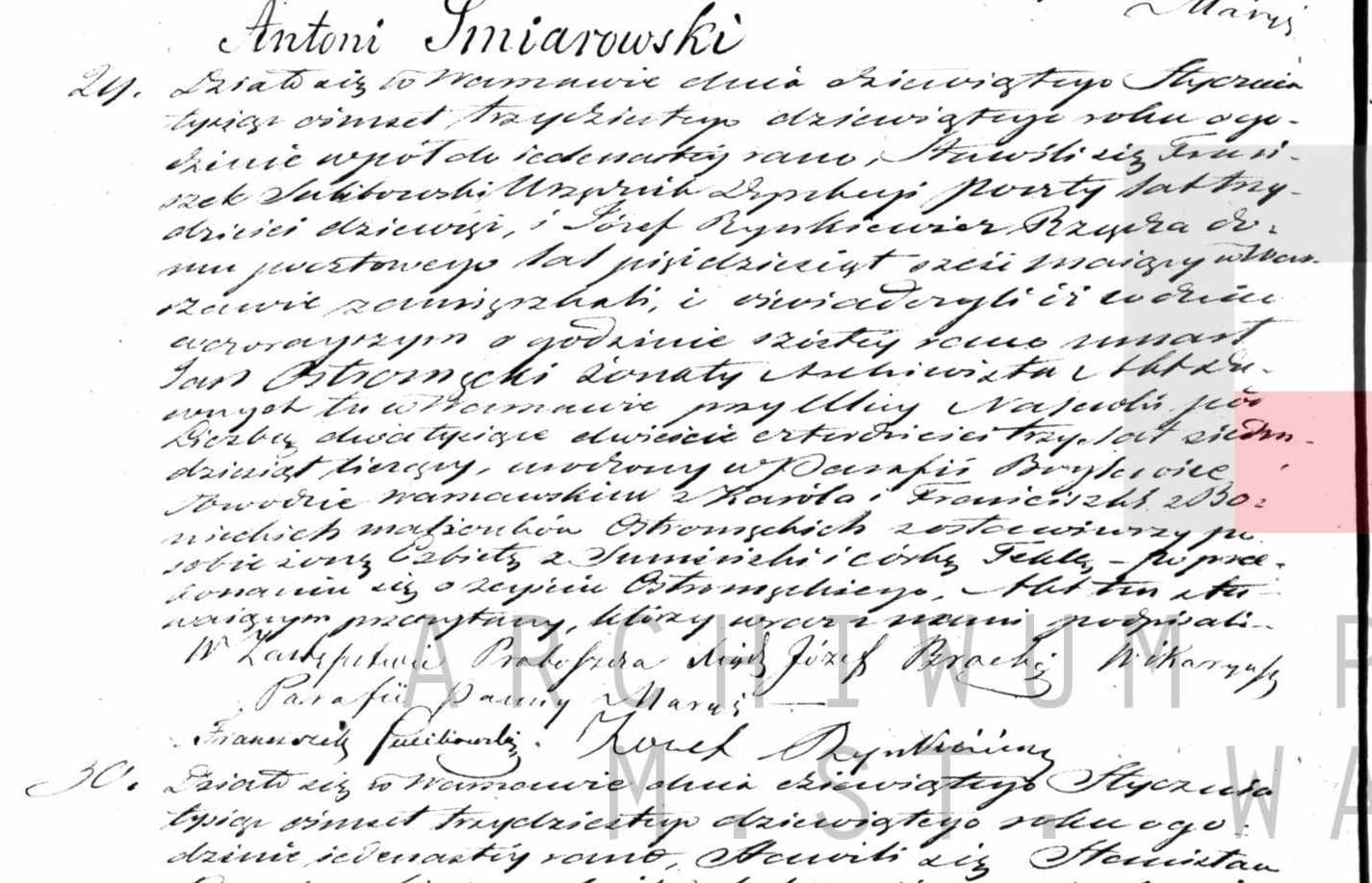 | sw.469044 | sw.469045 (sw.469045) | | | | | | | | | Akt zgonu: Warszawa Nawiedzenie NMP (obecn. m. Warszawa), 29/1839 [indeks na http://geneteka.genealodzy.pl/] http://szukajwarchiwach.pl/72/160/0/-/17/skan/full/JMAuw6EcjHxLJatmOFDipA [podgląd] |