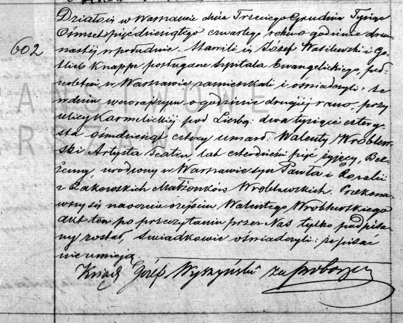 | sw.568635 | sw.568635 | sw.469984 (sw.469984) | sw.469985 (sw.469985) | Akt zgonu: Warszawa, par. św. Andrzeja (obecn. m. Warszawa), 602/1854 [indeks na http://geneteka.genealodzy.pl/] http://szukajwarchiwach.pl/72/159/0/-/24/skan/full/jPQ-EfVqQI2_d0pG-eRGJg [podgląd] |