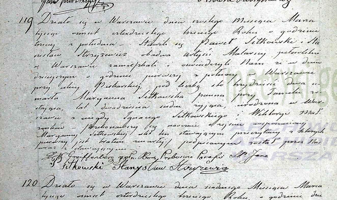 | sw.470087 | | | 1816 | | | | wychodzi za mąż | Akt zgonu: Warszawa św. Jan (obecn. m. Warszawa), 119/1843 [indeks na http://geneteka.genealodzy.pl/] http://metryki.genealodzy.pl/metryka.php?ar=8&zs=9233d&sy=516&kt=2&plik=118-123.jpg [podgląd] |