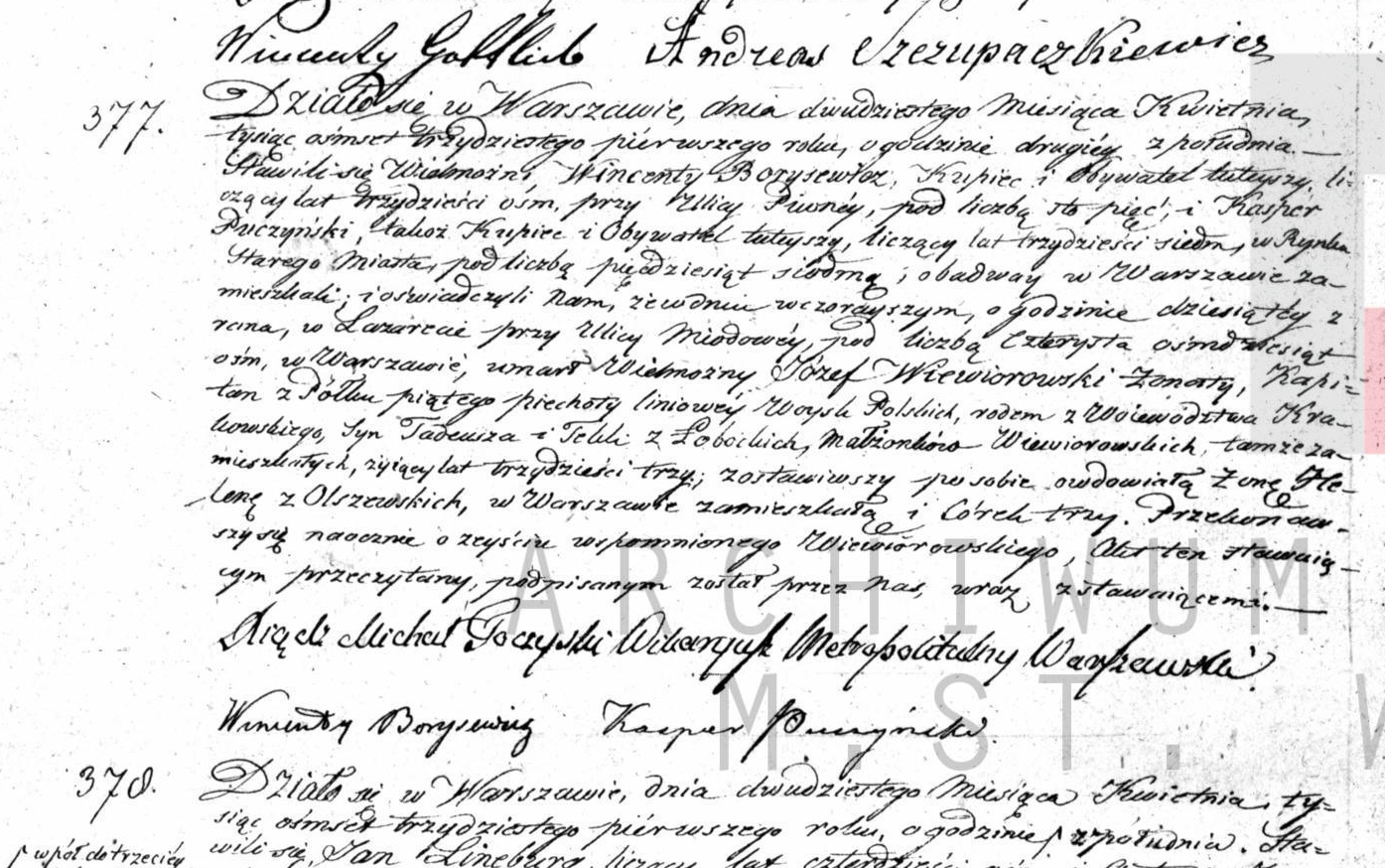 | sw.471637 | | | 1823 | | | | wychodzi za mąż | Akt zgonu: Warszawa św. Jan (obecn. m. Warszawa), 377/1831 [indeks na http://geneteka.genealodzy.pl/] http://szukajwarchiwach.pl/72/161/0/-/6/skan/full/DQalw4NQsBobs_mUSv8WhQ [podgląd] |