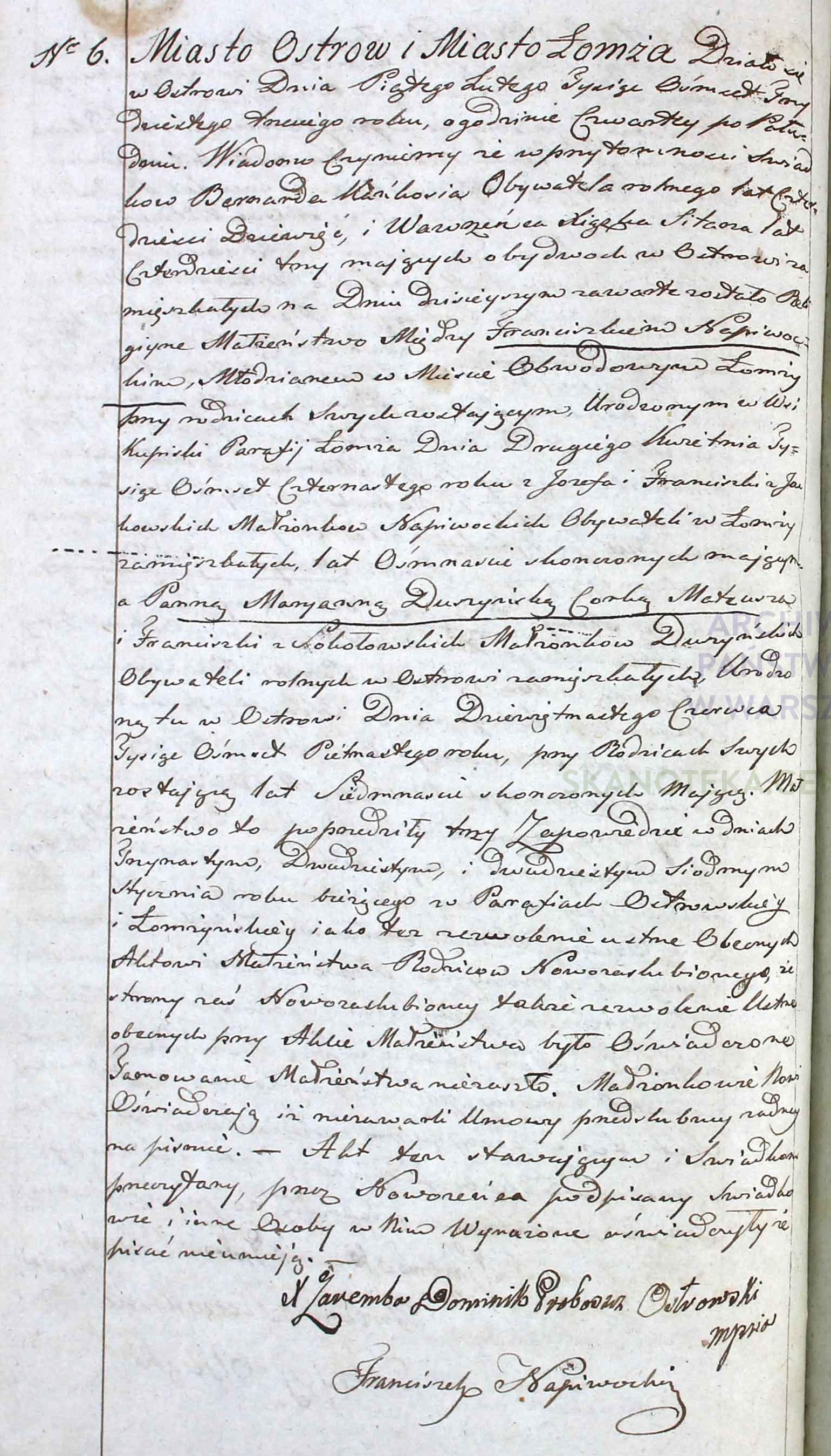 | sw.484603 | sw.484603 | sw.472529 (sw.472529) | sw.472530 (sw.472530) | Akt małżeństwa: Ostrów Mazowiecka (obecn. woj. mazow.), 6/1833 [indeks na http://geneteka.genealodzy.pl/] http://metryki.genealodzy.pl/metryki.php?op=kt&ar=6&zs=0092d&sy=1833&kt=2 [podgląd] |