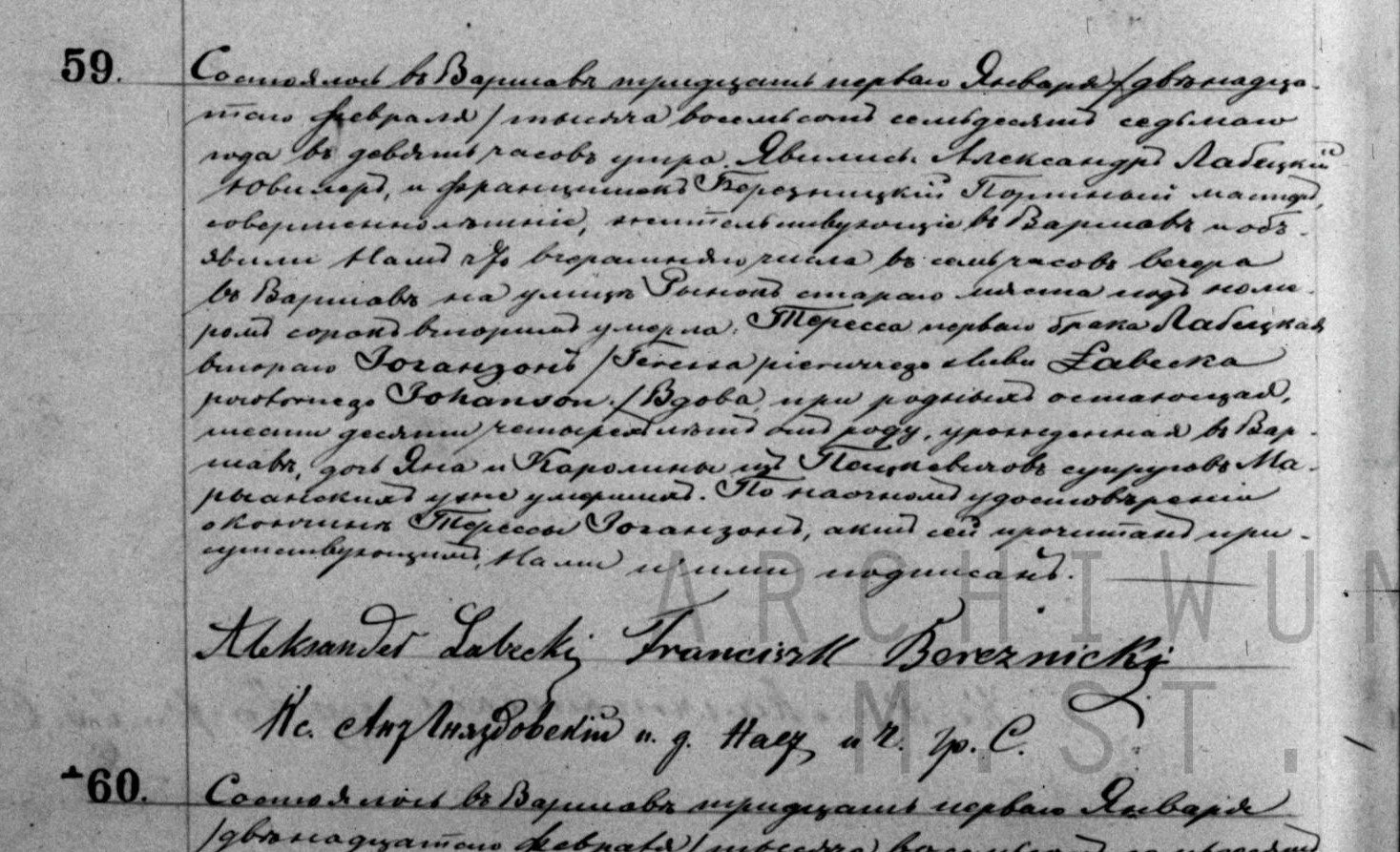 | genetekaz.3341398 | 11 | feb | 1877 | | xpar.1448 | Akt zgonu: Warszawa św. Jan (obecn. m. Warszawa), 59/1877 http://szukajwarchiwach.pl/72/161/0/-/93/str/1/29/10#tabSkany [podglad] | | Akt zgonu obecny w bazie Geneteka |