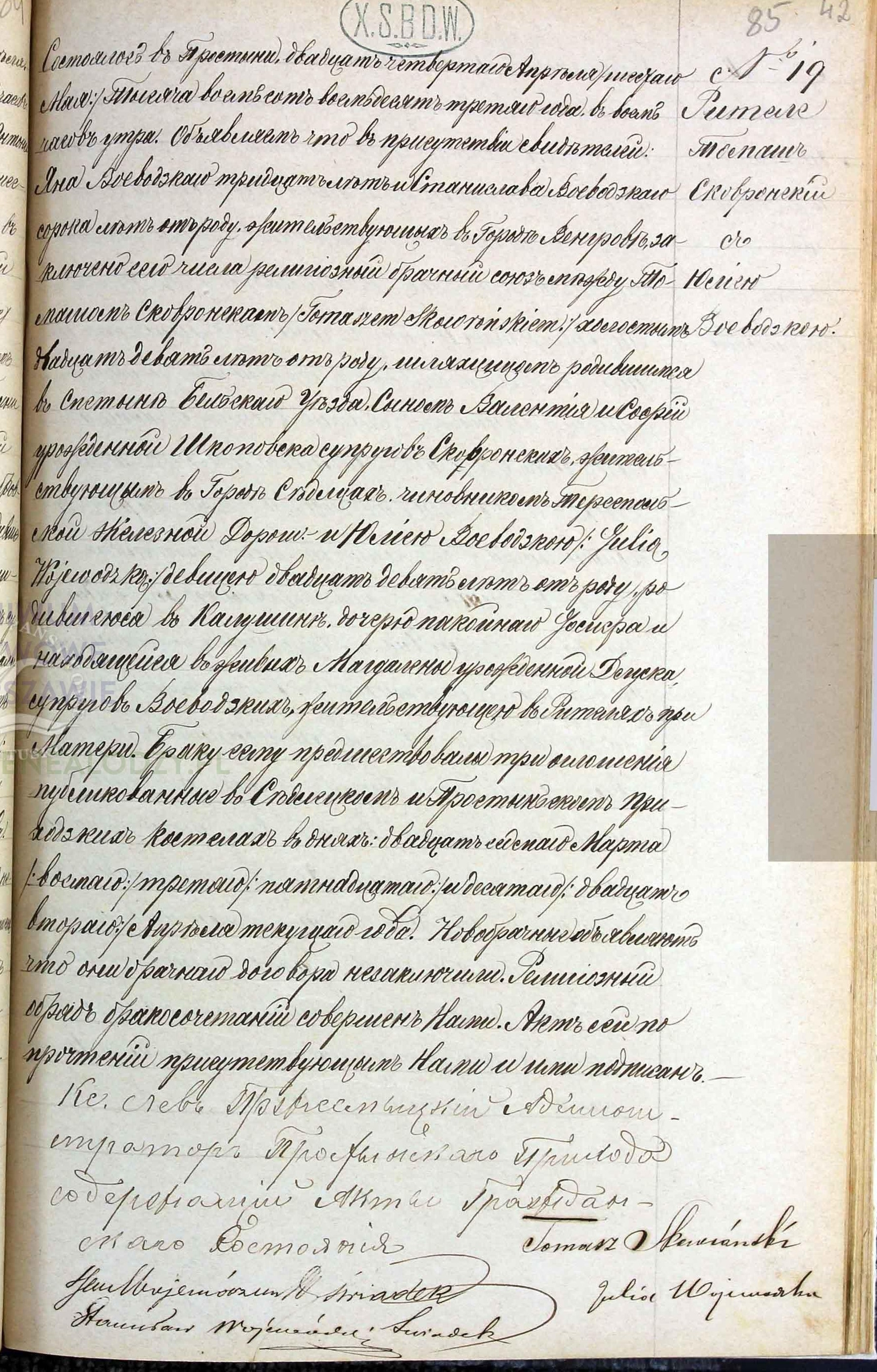 | sw.441609 | sw.481993 | sw.481994 (sw.481994) | sw.481995 (sw.481995) | Akt małżeństwa: Prostyń (obecn. woj. mazow.), 12/1875 [indeks na http://geneteka.genealodzy.pl/] http://metryki.genealodzy.pl/metryki.php?op=kt&ar=6&zs=0134d&sy=1875&kt=2 [podgląd] |