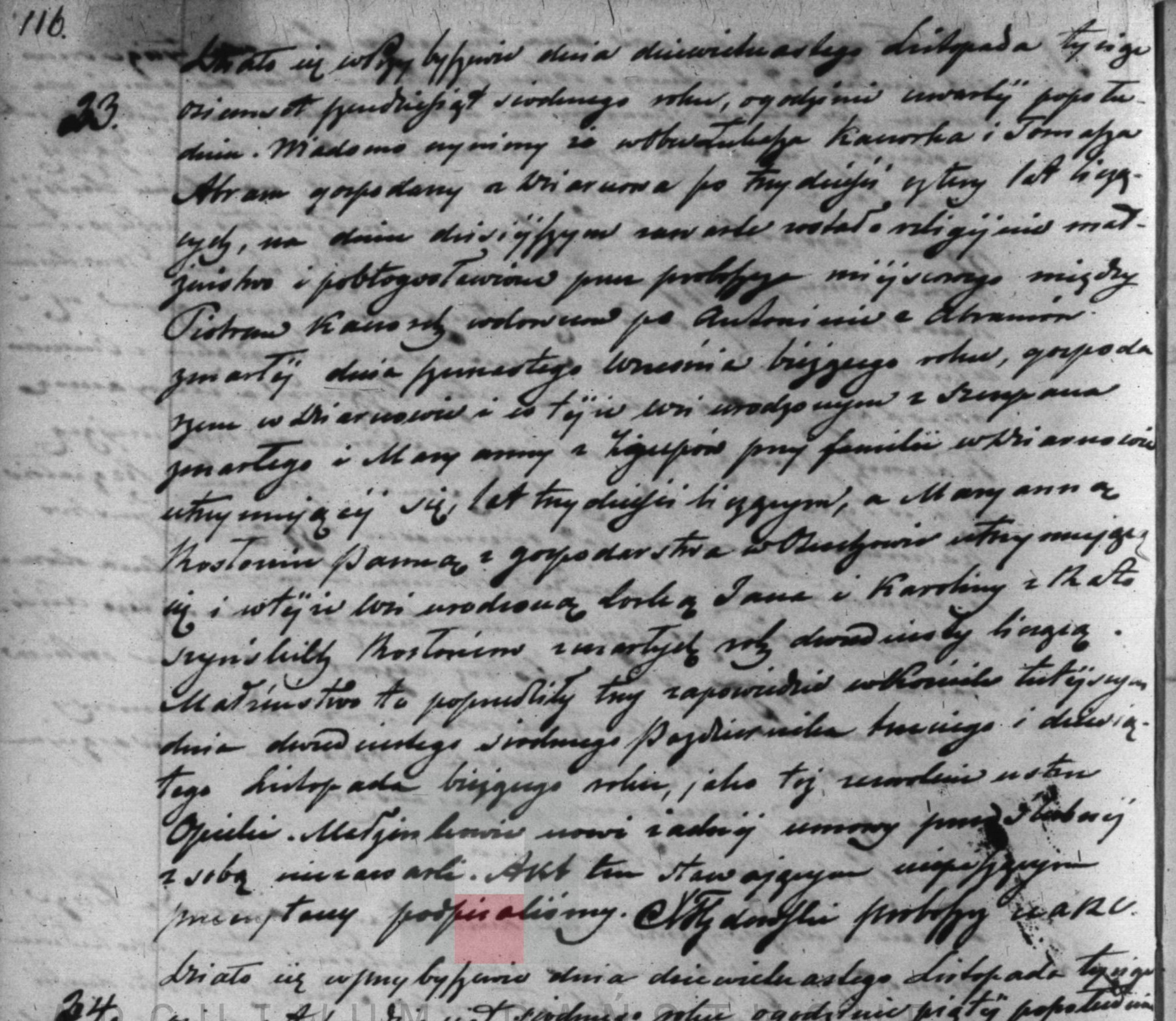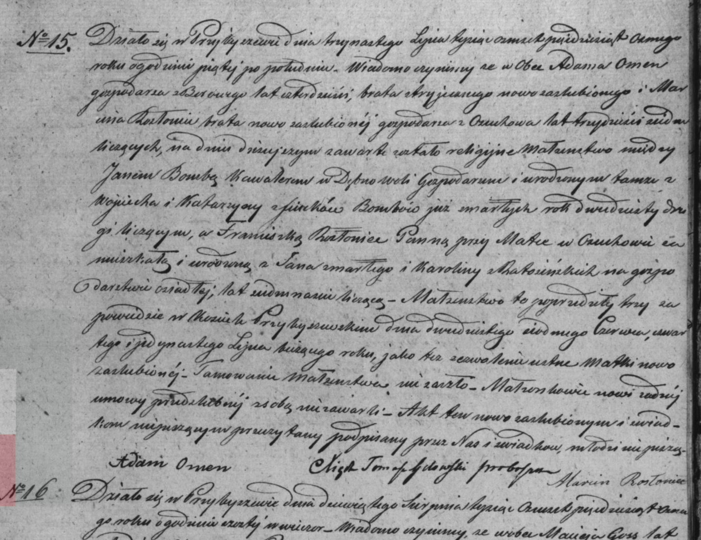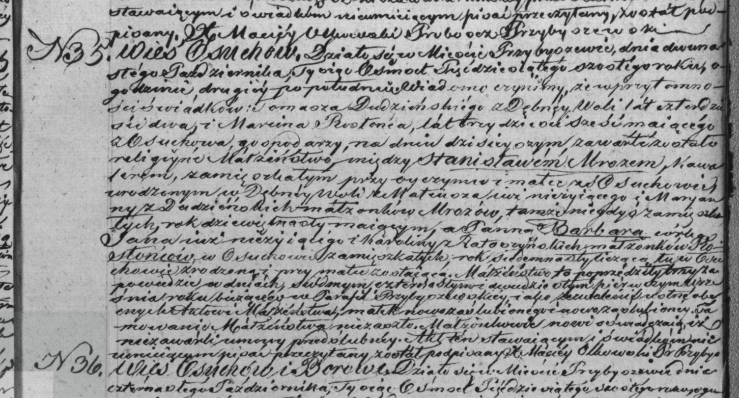 | sw.484087 | sw.485362 | sw.485363 (sw.485363) | sw.485364 (sw.485364) | Akt małżeństwa: Przybyszew (obecn. woj. mazow.), 35/1856 [indeks na http://geneteka.genealodzy.pl/] http://szukajwarchiwach.pl/58/154/0/1/6/skan/full/YrWmr5pah0dCqwK8GRcjNA [podgląd] |