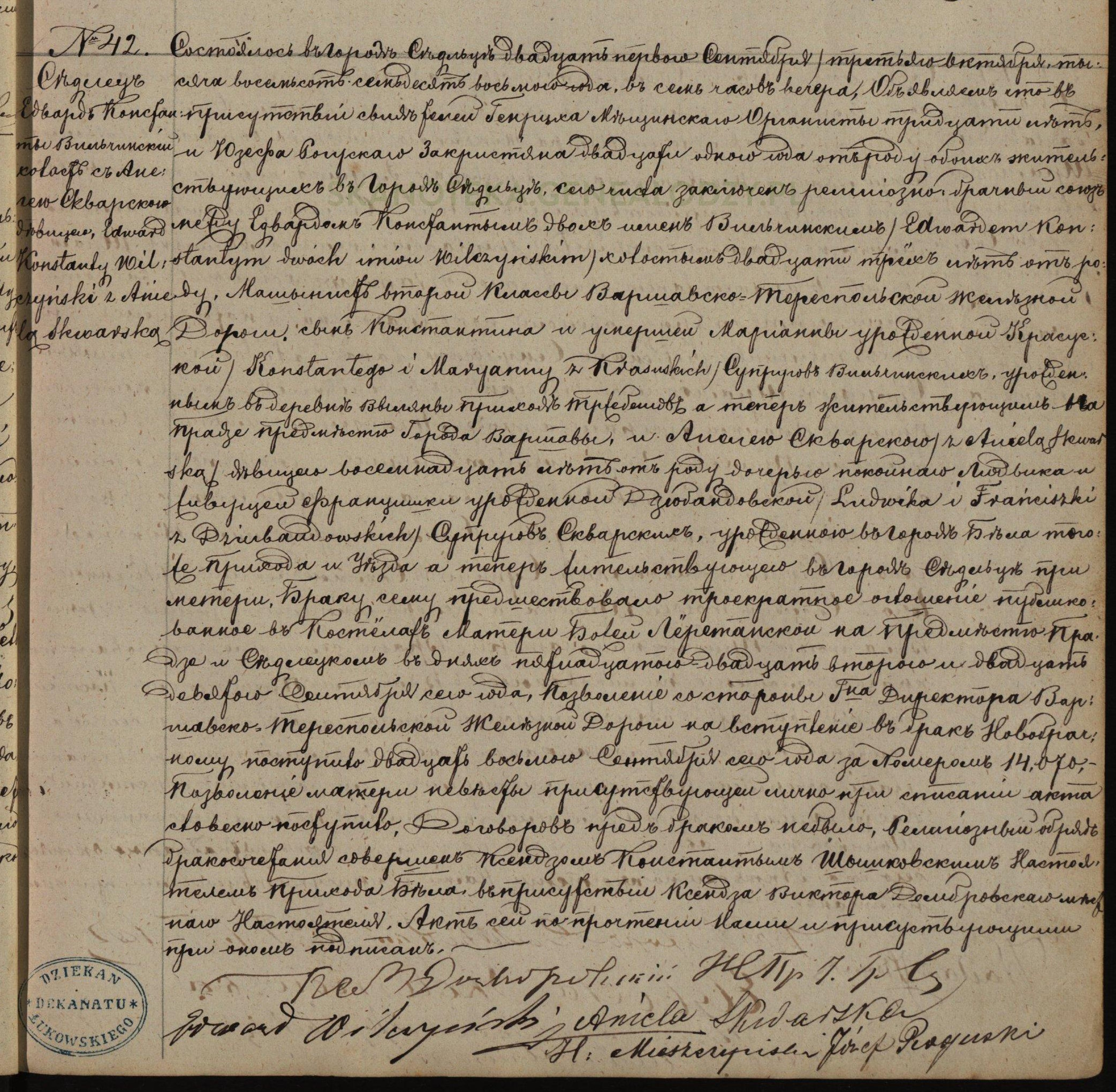 | sw.535909 | sw.535910 (sw.535910) | sw.535911 (sw.535911) | Akt małżeństwa: Trzebieszów (obecn. woj. lubel.), 7/1841 [indeks na http://geneteka.genealodzy.pl/] http://szukajwarchiwach.pl/35/1938/0/2.4/44/skan/full/JPKn0U4uDcOn43YJDQOHpQ [podgląd] |