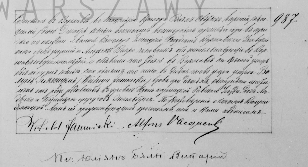 | sw.1096731 | sw.1096731 | sw.1096732 (sw.499704) | sw.1096733 (sw.499705) | Akt małżeństwa: Warszawa św. Jan (obecn. m. Warszawa), 13/1891 [indeks na http://geneteka.genealodzy.pl/] http://metryki.genealodzy.pl/metryka.php?ar=8&zs=9233d&sy=334&kt=1&skan=013.jpg [podgląd] |