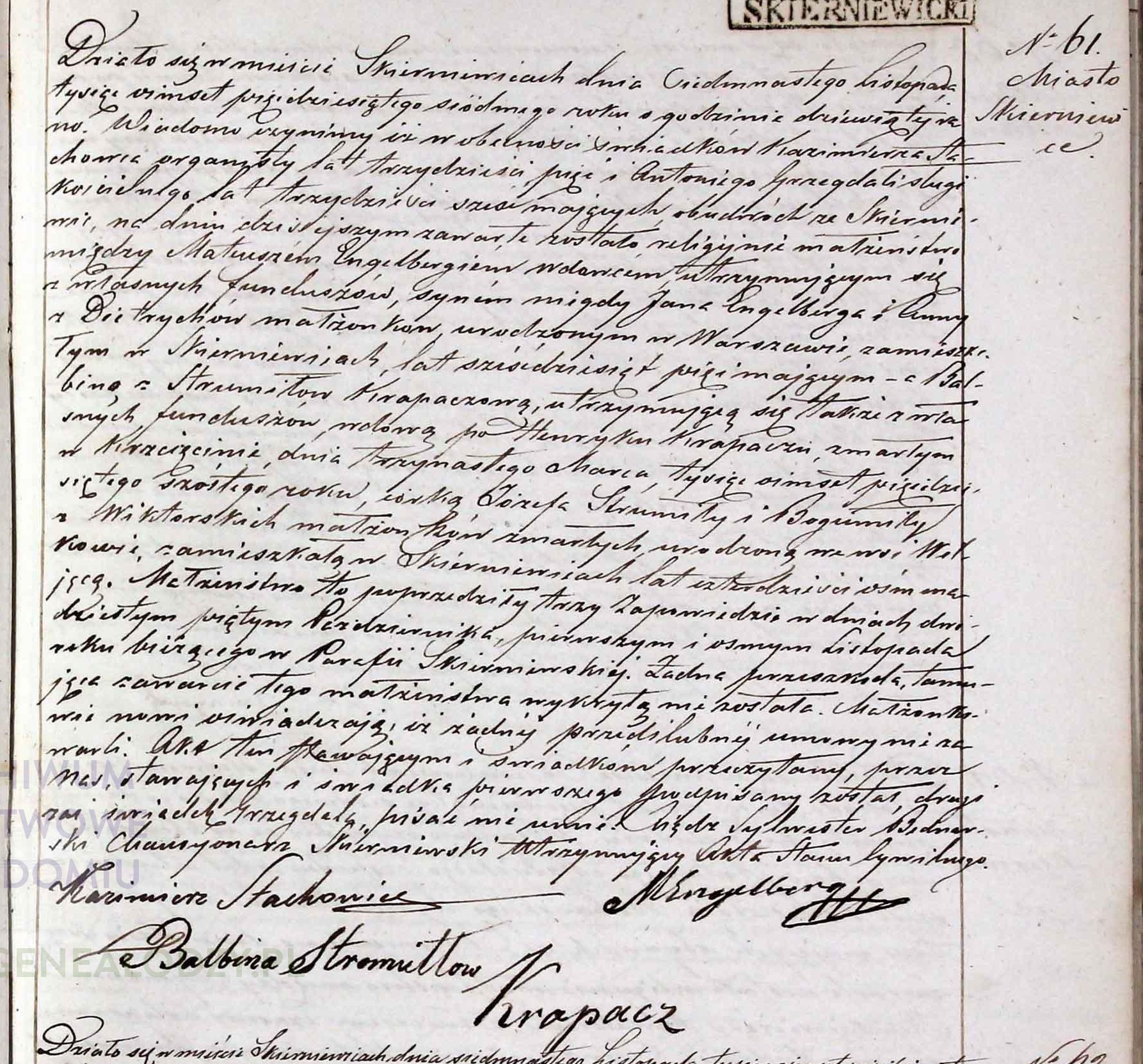| sw.499706 | m | Mateusz | | | | | Engelberg | | | | | Akt małżeństwa: Jeruzal pow. skierniewicki (obecn. woj. łódz.), 27/1850 [indeks na http://geneteka.genealodzy.pl/] http://metryki.genealodzy.pl/metryka.php?ar=3&zs=1496d&sy=1850&kt=2&skan=27-28.jpg [podgląd] |