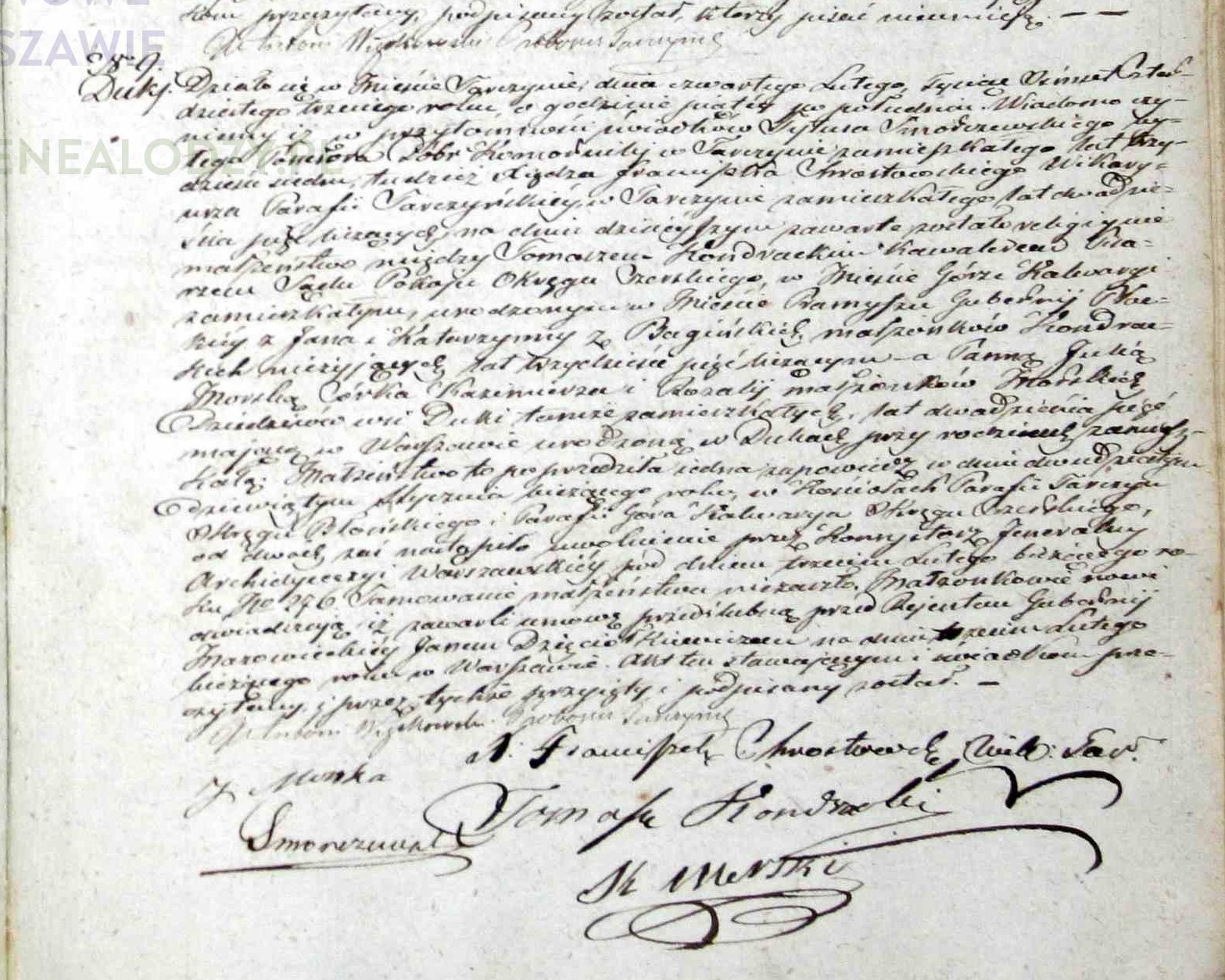 | sw.500144 | | | 1817 | | | | rodzi mu się dziecko | Akt małżeństwa: Tarczyn (obecn. woj. mazow.), 40/1842 [indeks na http://geneteka.genealodzy.pl/] http://metryki.genealodzy.pl/metryka.php?ar=2&zs=1363d&sy=1842&kt=2&skan=36-41.jpg [podgląd] |