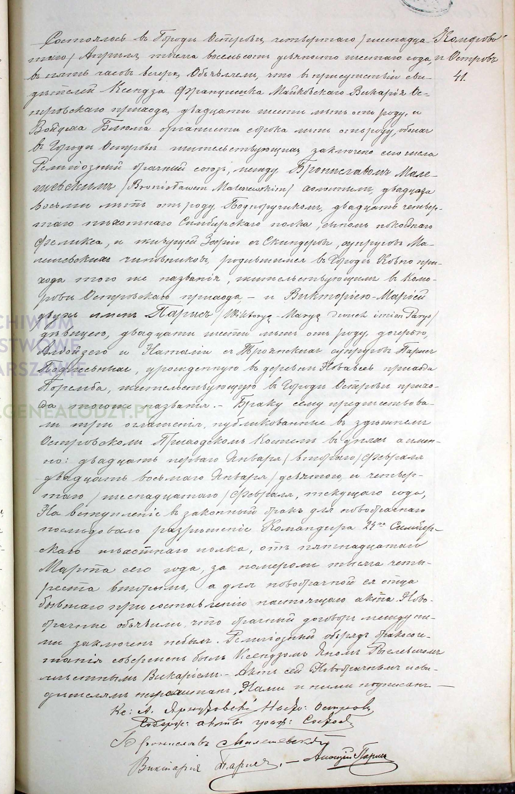 | sw.510409 | sw.510409 | sw.504621 (sw.504621) | sw.504622 (sw.504622) | Akt małżeństwa: Ostrów Mazowiecka (obecn. woj. mazow.), 41/1896 [indeks na http://geneteka.genealodzy.pl/] http://metryki.genealodzy.pl/metryka.php?ar=6&zs=0092d&sy=1896&kt=2&skan=40-41.jpg [podgląd] |