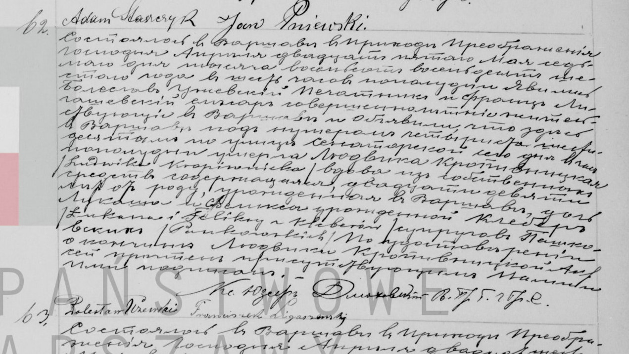| sw.504833 | sw.504834 (12.442.190) | sw.504835 (sw.179363) | Akt małżeństwa: Warszawa św. Antoni (obecn. m. Warszawa), 109/1883 [indeks na http://geneteka.genealodzy.pl/] http://metryki.genealodzy.pl/metryki.php?op=kt&ar=1&zs=1218d&sy=1883&kt=2 [podgląd] |