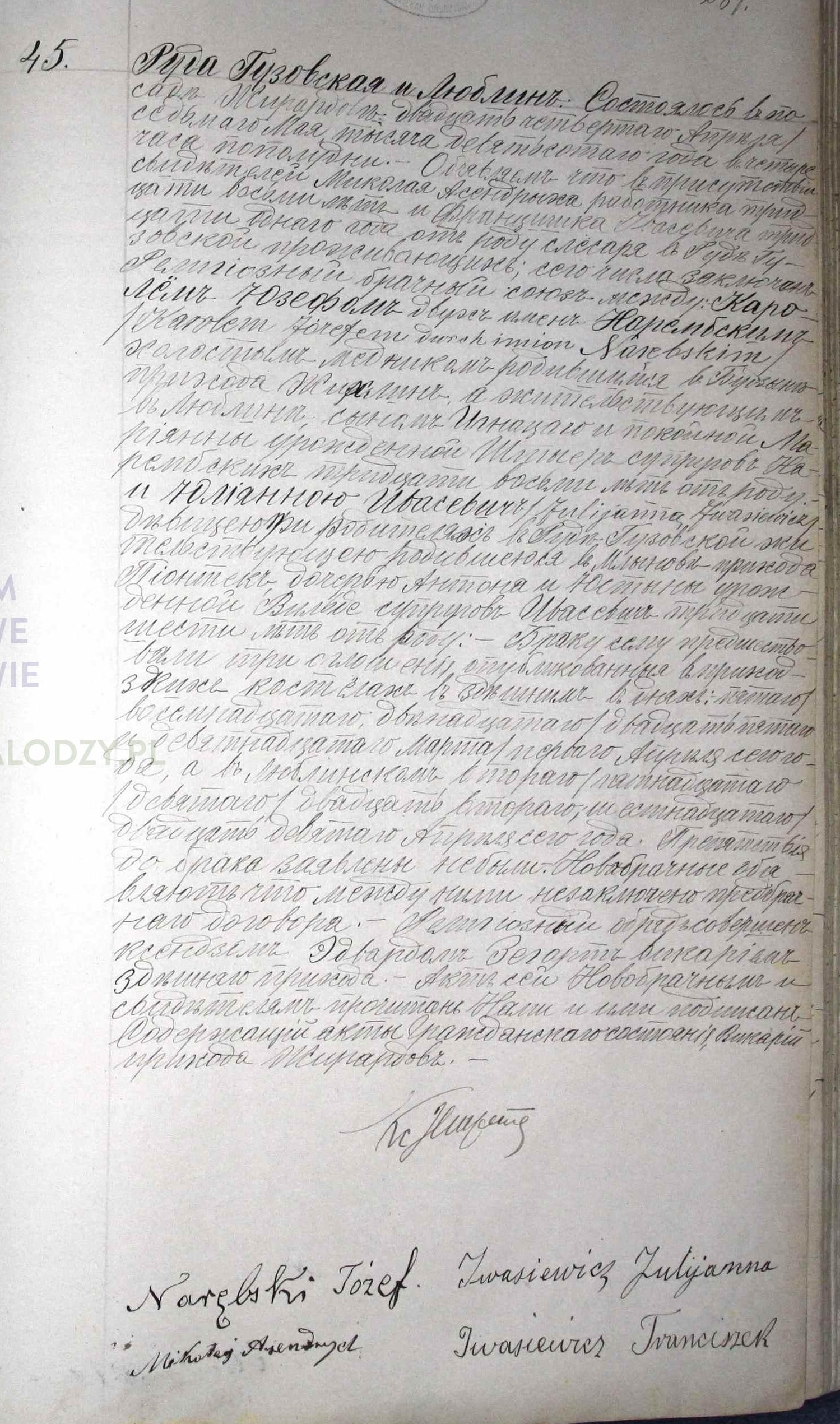 | sw.506807 | | | 1857 | | | | rodzi dziecko | Akt małżeństwa: Góra św. Małgorzaty (obecn. woj. łódz.), 11/1854 [indeks na http://geneteka.genealodzy.pl/] |