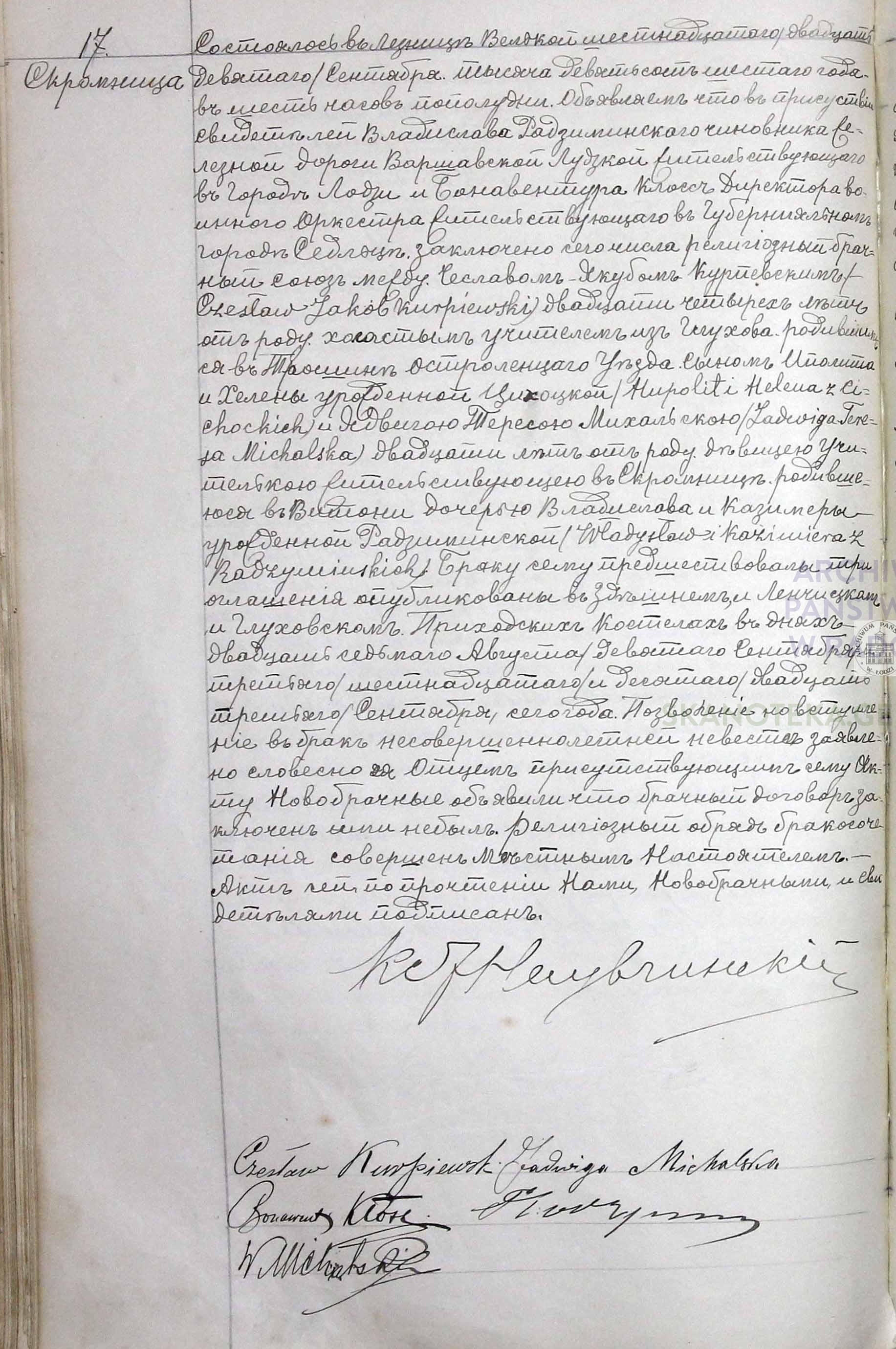 | sw.508777 | 1895 | rodzi dziecko | Akt małżeństwa: Rossoszyca (obecn. woj. łódz.), 13/1883 [indeks na http://geneteka.genealodzy.pl/] http://metryki.genealodzy.pl/metryki.php?op=kt&ar=3&zs=1648d&sy=1883&kt=2 [podgląd] | |||||