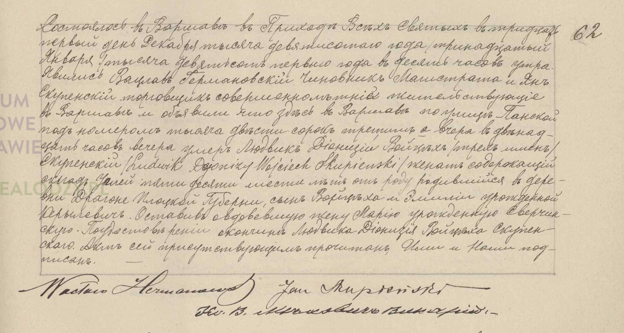 | genetekaz.11459619 | 12 | jan | 1901 | xpar.1454 | Akt zgonu: Warszawa Wszystkich Świętych (obecn. m. Warszawa), 62/1901 http://localhost/mjm/wwswietych_1901_0058-0063.jpg [podglad] | Akt zgonu obecny w bazie Geneteka | ||